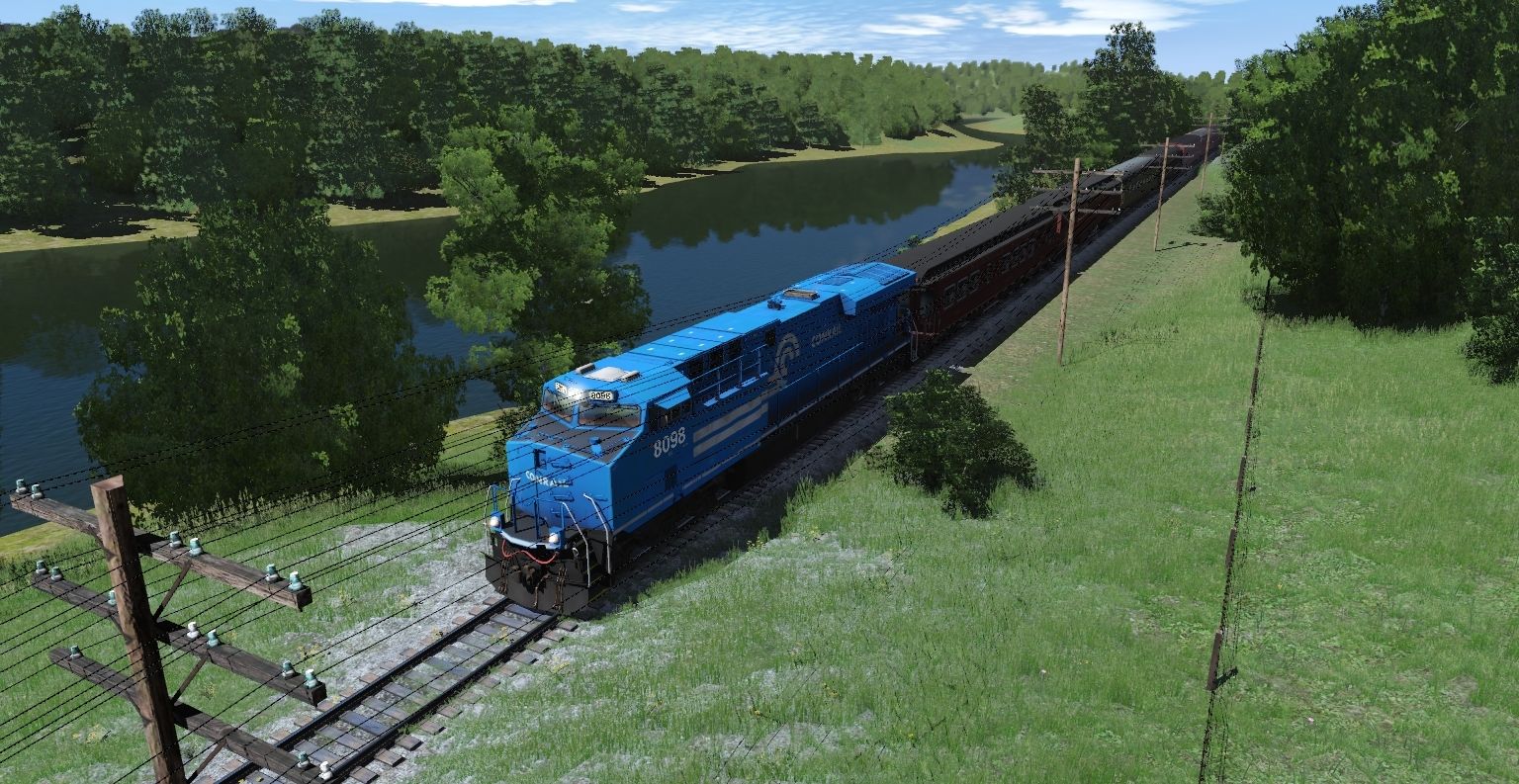 Tags: Trainz Railroad Simulator 2019, Tidewater Point Rail v3, Default, NS ES44AC CR Heritage 8098 (TS12), Conrail F8A 1506 (TS12), Conrail F8A 1505 (TS12), NS OCS Business Car 1 'Virginia, NS Business Car #42 (Fictional), Pullman Paul A Bert, Pullman Dover Harbor 10-1-2, PRR Buffet-Lounge-Sleeper #8404 'Catalpa Falls, PRR Kitchen-Dorm 4609, PRR P85A Coach, PRR P70 Coach 1702