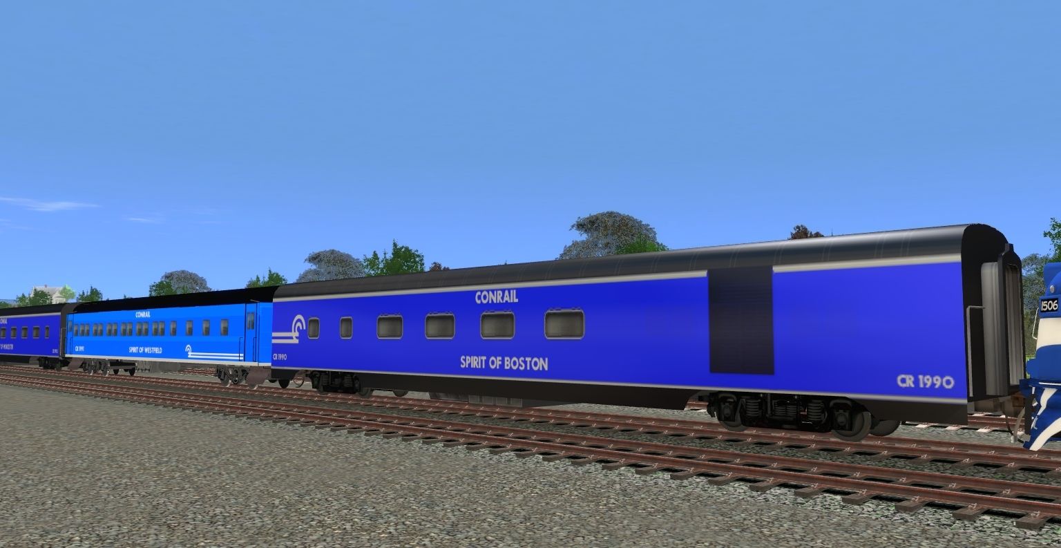 Tags: Trainz: A New Era, Trainz Reskin Comparison (TANE), Conrail F8A 1506 (TS12), Conrail F8A 1505 (TS12), Conrail OCS HEP Power Car #1990 (Spirit Of Boston), Conrail OCS Coach #1991 (Spirit Of Westfield), Conrail OCS Coach #1992 (Spirit Of Worcester), Conrail OCS Dome #1993 Sprit Of Altoona, Conrail OCS Coach #1994 (Spirit Of Chester), Conrail OCS Coach #1995 (Spirit Of Pavonia), Conrail OCS Coach #1996 (Spirit Of Springfield), Conrail OCS Coach #1997 (Spirit Of Conway), Conrail OCS Coach #1998 (Spirit Of Juniata)