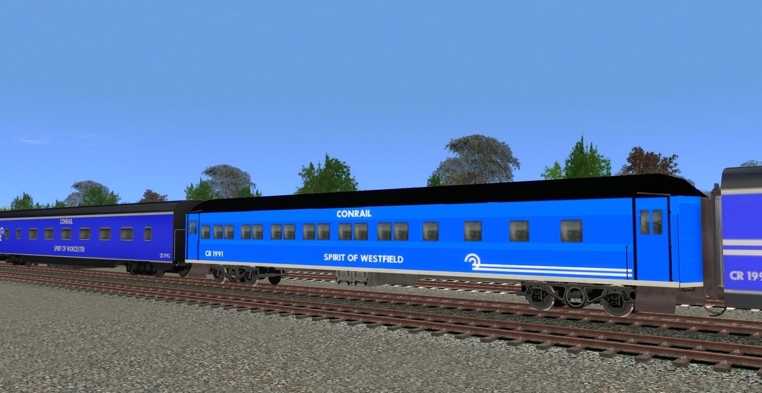 Tags: Trainz: A New Era, Trainz Reskin Comparison (TANE), Conrail F8A 1506 (TS12), Conrail F8A 1505 (TS12), Conrail OCS HEP Power Car #1990 (Spirit Of Boston), Conrail OCS Coach #1991 (Spirit Of Westfield), Conrail OCS Coach #1992 (Spirit Of Worcester), Conrail OCS Dome #1993 Sprit Of Altoona, Conrail OCS Coach #1994 (Spirit Of Chester), Conrail OCS Coach #1995 (Spirit Of Pavonia), Conrail OCS Coach #1996 (Spirit Of Springfield), Conrail OCS Coach #1997 (Spirit Of Conway), Conrail OCS Coach #1998 (Spirit Of Juniata)