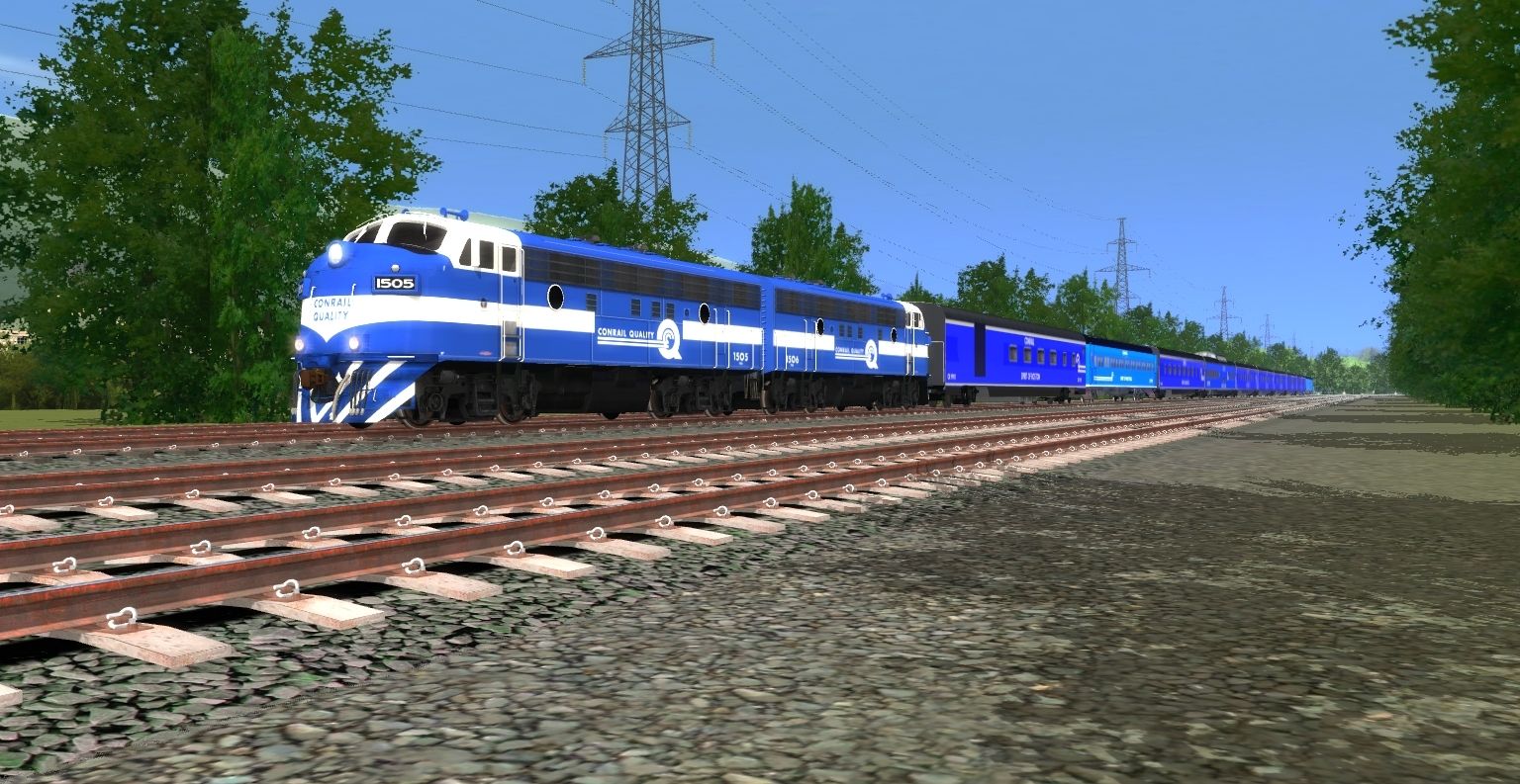 Tags: Trainz: A New Era, Trainz Reskin Comparison (TANE), Conrail F8A 1505 (TS12), Conrail F8A 1506 (TS12), CR GE C40-8W #6062, Conrail OCS HEP Power Car #1990 (Spirit Of Boston), Conrail OCS Coach #1991 (Spirit Of Westfield), Conrail OCS Coach #1992 (Spirit Of Worcester), Conrail OCS Dome #1993 Sprit Of Altoona, Conrail OCS Coach #1994 (Spirit Of Chester), Conrail OCS Coach #1995 (Spirit Of Pavonia), Conrail OCS Coach #1996 (Spirit Of Springfield), Conrail OCS Coach #1997 (Spirit Of Conway)