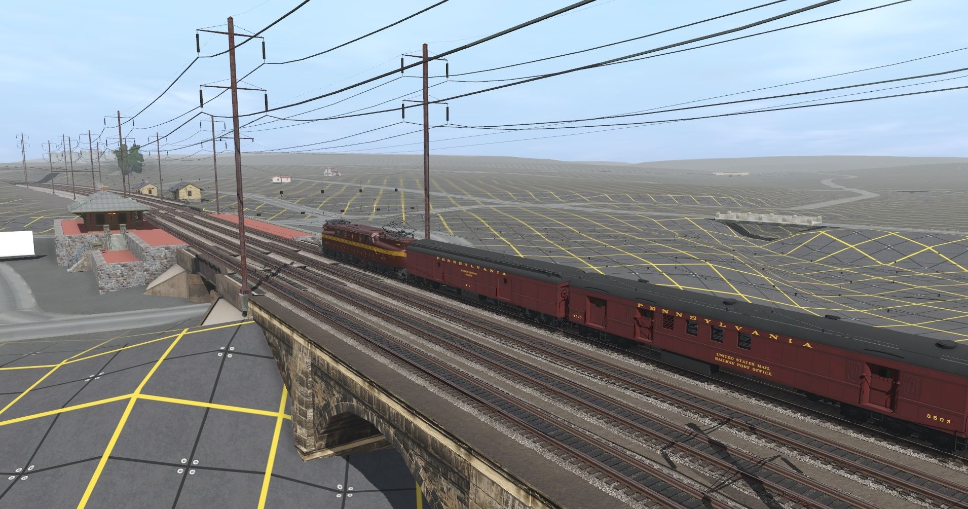 Tags: Trainz Railroad Simulator 2019, Pennsy Lines- Pitts to Philly and More WIP 22D, GG! test, PRR GG1 tuscan red, PRR GG1 brunswick green single stripe (black), PRR GG1 brunswick green (black), PRR PB70 Combine Postwar, PRR BM70NB RPO, PRR B70 Baggage Postwar, PRR D78 Diner Postwar, PRR P70 Coach Postwar, PRR Z74 Observation Postwar, 40ft Boxcar WP, 40ft Boxcar Fowler W&LE