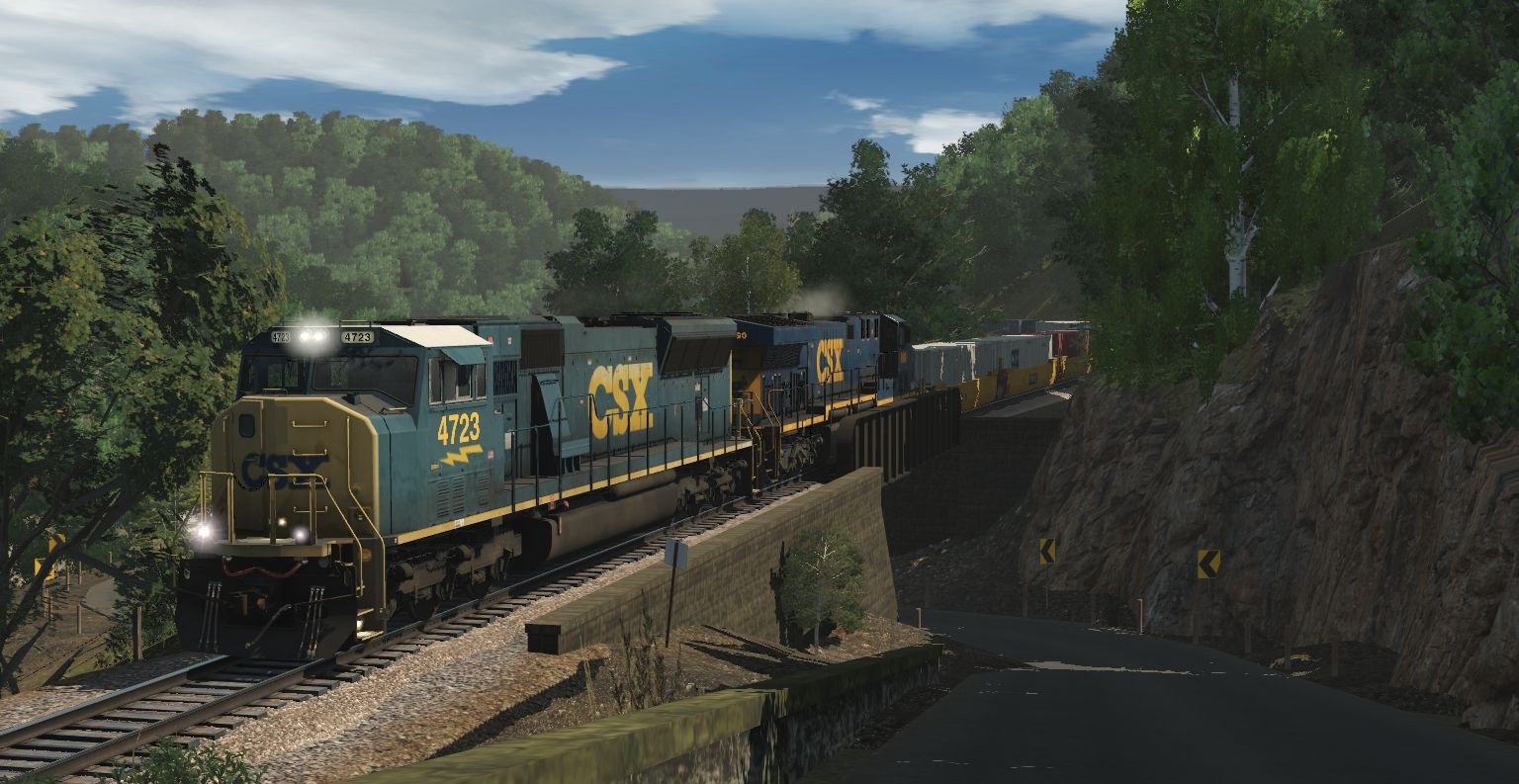 Caption: CSX Q033 with a MAC and CW60 lets up on the dynamics after being held at CP HILL for a late B760.