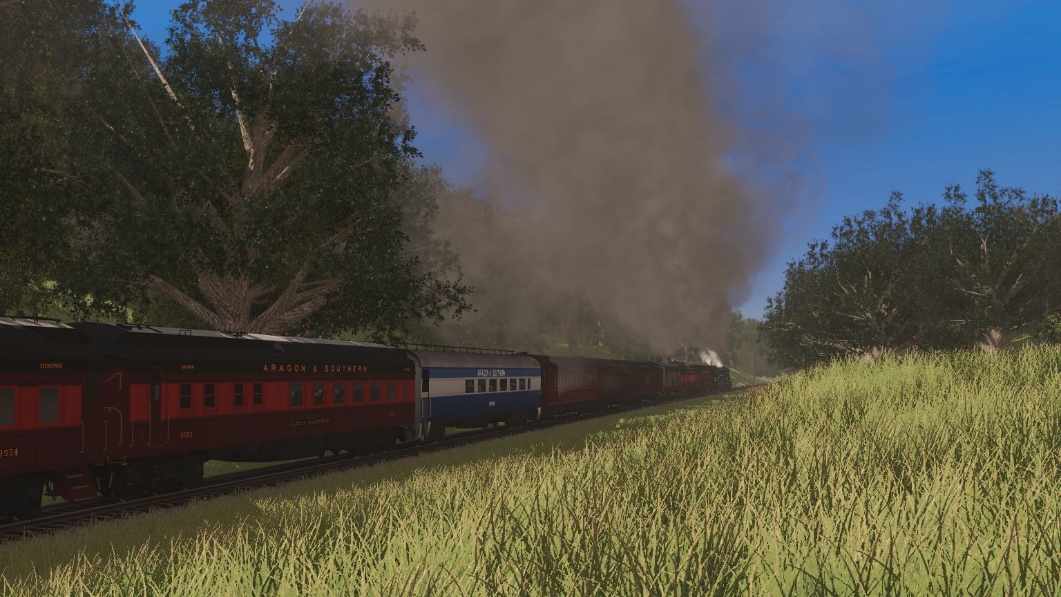 Tags: Trainz Railroad Simulator 2019, Aragon & Southern, Main Session, A&S 209 Engine, A&S G16a Engine, A&S 31 Engine, A&S Excursion Observation, A&S Excursion Diner, A&S Sophie Diner, A&S Ex-ACE 3000 Coach, A&S Ex-N&W Coach, A&S Ex-N&W Combine, A&S ADA 1365, A&S Excursion Generator