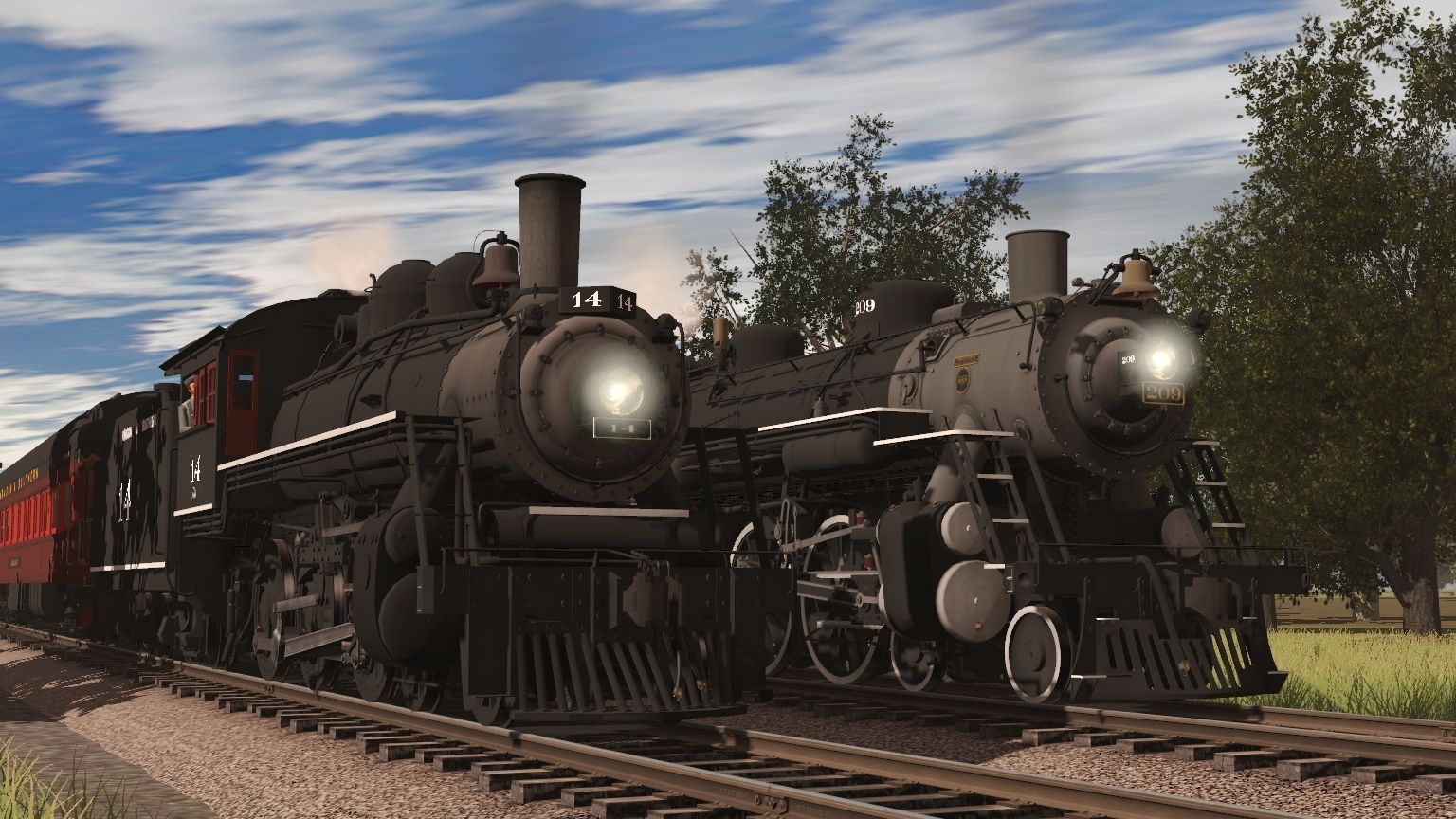 Tags: Trainz Railroad Simulator 2019, Aragon & Southern, Main Session, A&S G16a Engine, A&S 209 Engine, A&S G16a Tender, A&S 209 Tender, A&S Excursion Observation, A&S Excursion Diner, A&S Sophie Diner, A&S Ex-ACE 3000 Coach, A&S Ex-N&W Coach, A&S Ex-N&W Combine, A&S ADA 1365
