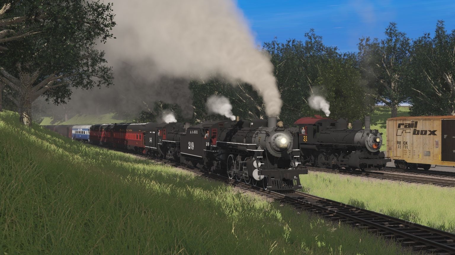 Tags: Trainz Railroad Simulator 2019, Aragon & Southern, Main Session, A&S 209 Engine, A&S 31 Engine, A&S G16a Engine, A&S GP38-2 YN2, A&S Hi-Rail No.1, RBOX 50' ACF Boxcar 3, RBOX 50ft Boxcar FMC, NS 50' ACF Boxcar 1, RBOX P-S 50_6ft Boxcar, A&S 209 Tender, CSXT 50ft Boxcar FMC