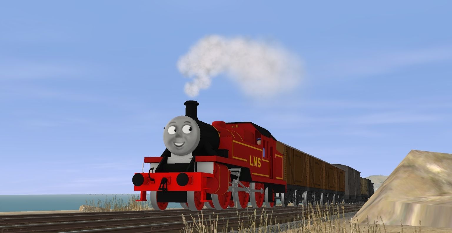 Tags: Trainz: A New Era, Arthur's Line - Harwick Station & Fishing Village, STW3D - Arthur The Spotless Engine, (#1TFM) James 2012, Engie's - TVS GWR Ventilated Van (TS12+), Engie's - TVS L&B 4T Box Van (TS12+), (#1TFM) James' Tender 2012, Engie's - TVS LMS 12T Steel Van (TS12+), Engie's - TVS LNWR 6T Van (TS12+), Sodor Brake Van Grey