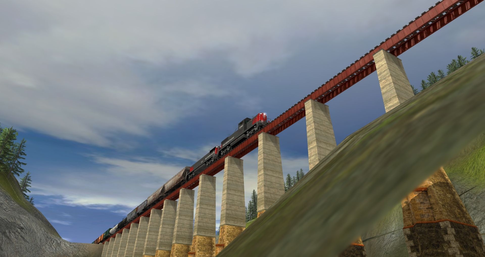 Tags: Trainz: A New Era, Kickstarter County, Southern Pacific HS18a #1280, Southern Pacific HS18b #1251, Custom ACF 3 Bay - Winchester & Western, Custom ACF 3 Bay - W Farms LLC, Custom C80 - Havenwood Southern, Custom 100 Ton Hopper - MRM, Custom 23000 gal tank - BundleStars, Custom 23000 gal tank - HK Oil, Custom 40' Boxcar - AU Logitistics, Custom 40' Boxcar - a giberiginal Game Store, Custom 40' Boxcar - Grizzled Aussie's Dark Rum
