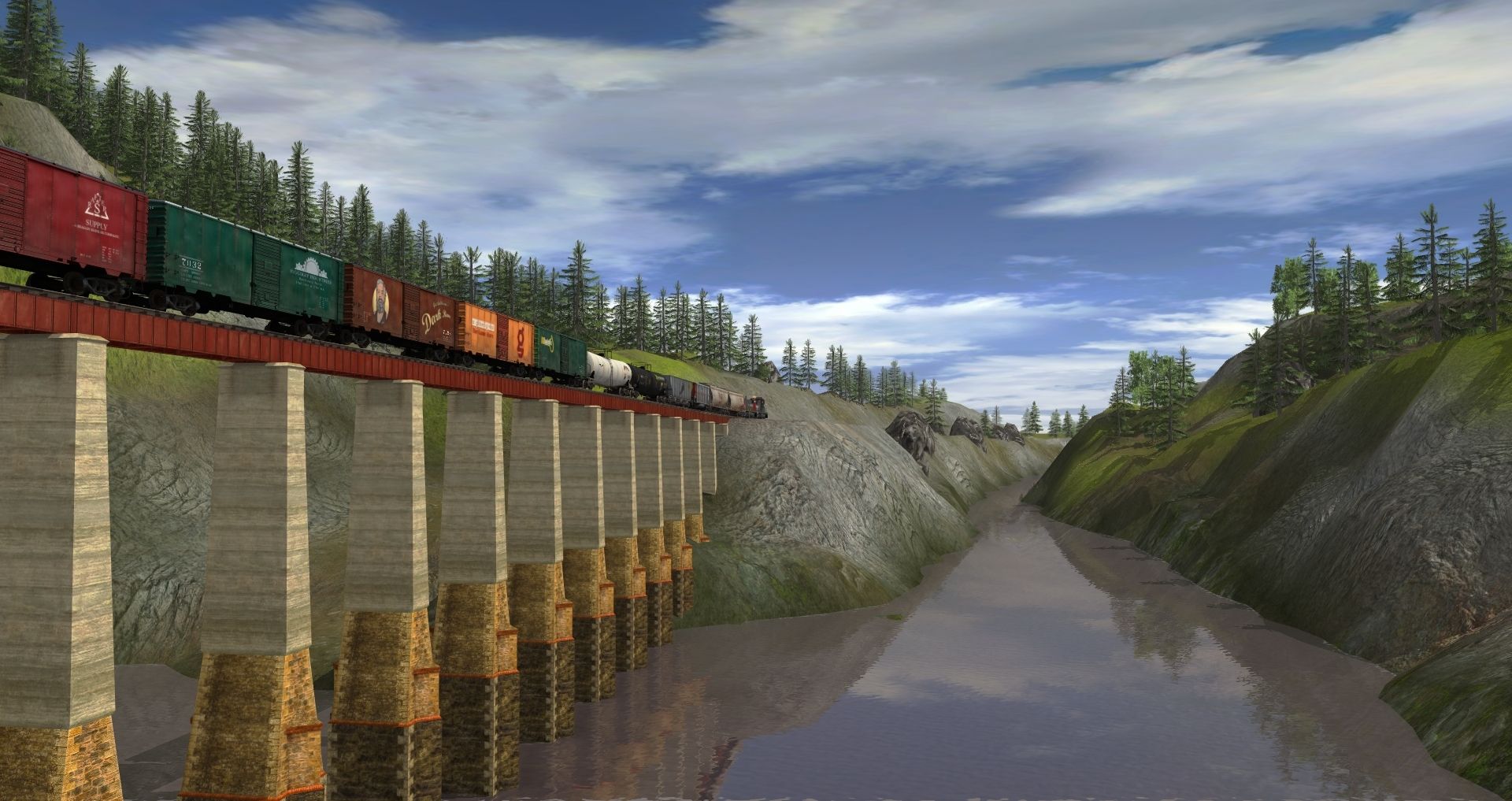 Tags: Trainz: A New Era, Kickstarter County, Southern Pacific HS18b #1251, Southern Pacific HS18a #1280, Custom 60' ACF Boxcar - Sam & Euan's, Custom 60' ACF Boxcar - Orange Orange, Custom 60' ACF Boxcar - San Luis Obispo, Custom 40' Boxcar - REES Fishing Outfitters, Custom 40' Boxcar - REAGAN KESSLER COMPANY, Custom 40' Boxcar - HIGGIKAY INDUSTRIES, Custom 40' Boxcar - Grizzled Aussie's Dark Rum, Custom 40' Boxcar - a giberiginal Game Store, Custom 40' Boxcar - AU Logitistics