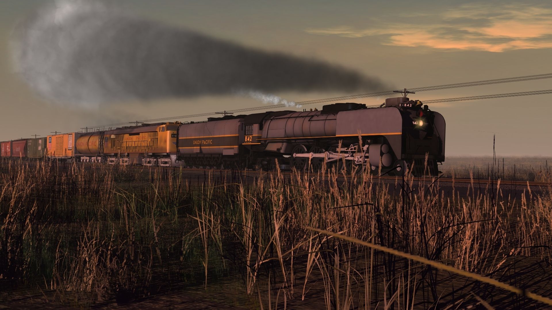 Tags: Trainz: A New Era, A Scene, Default, UNION PACIFIC 4500HP turbine 66, U.P FEF-3 TTG-Y, U.P 23-C Coal Tender TTG-Y, UP GETL Tender weatherd, UP 60' ACF Boxcar, BN 50' ACF Boxcar 1, ATSF ACF Centerflow 3 Bay long hatch, ATSF 50' PS-1, BN #481689 ACF Hopper, JR Evans Hopper CAGX #1, UP #180400 3 Bay ACF