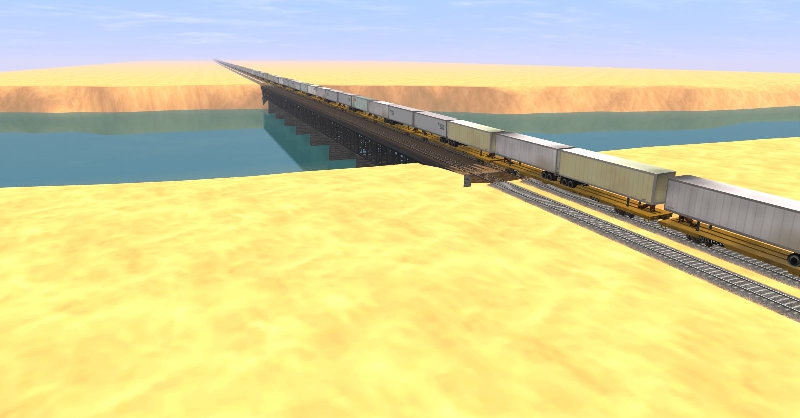 Tags: Trainz: A New Era, Desert Journey, Desert Journey Specials - DD40X TOFC, Union Pacific EMD DDA40X 1980's, TTX 89ft TOFC Flatcar, UP Caboose 25371