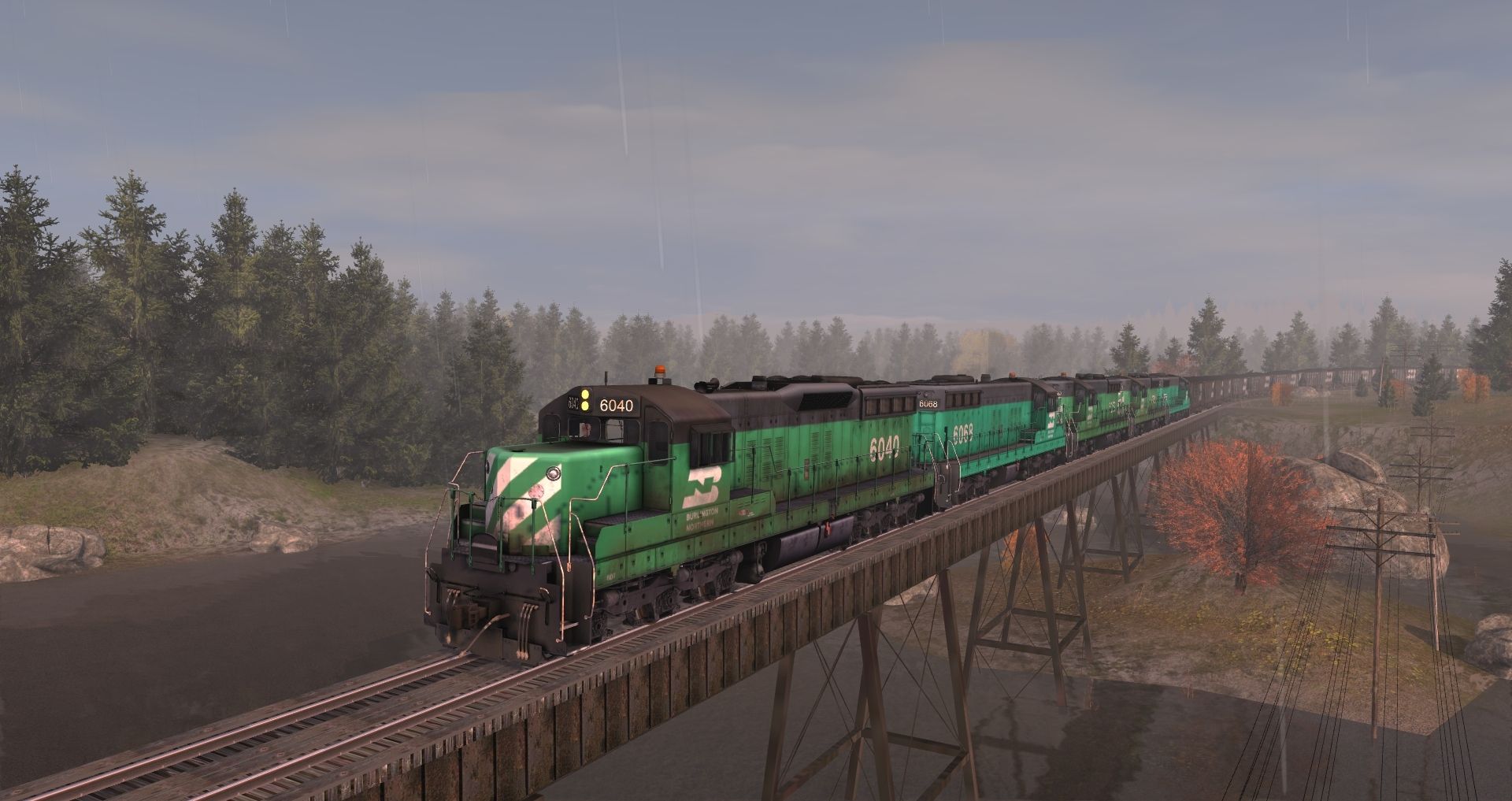 Posted by: sookool | Posted:2017-08-16 13:54:07 Caption: Tags: Trainz: A New Era, Legacy of the Burlington Northern v2, Coal delivery, BN SD7 low hood, BN SD7 high hood, BN 100 Ton Hopper