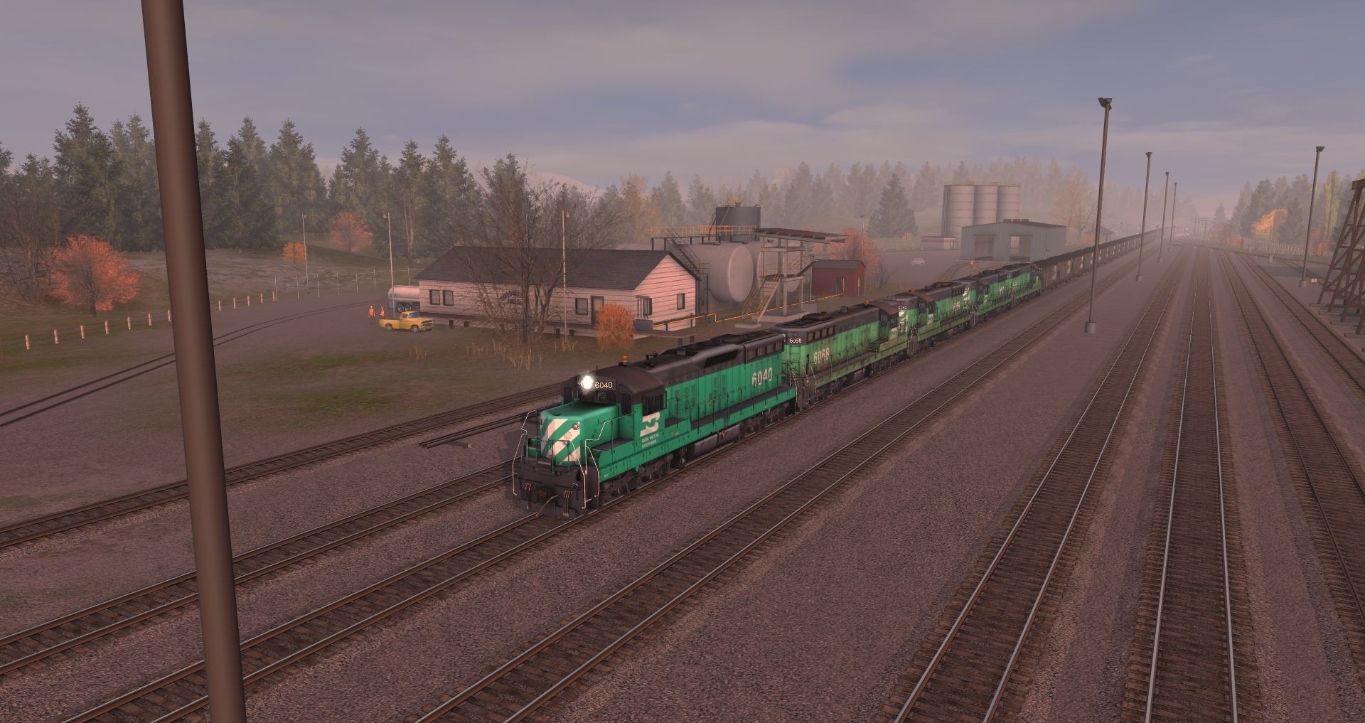 Tags: Trainz: A New Era, Legacy of the Burlington Northern v2, Coal delivery, BN SD7 low hood, BN SD7 high hood, BN 100 Ton Hopper, Invisible Train, BN 50' RBL ex-CB&Q, BN 60ft Thrall Boxcar, BN Ce-11 Caboose