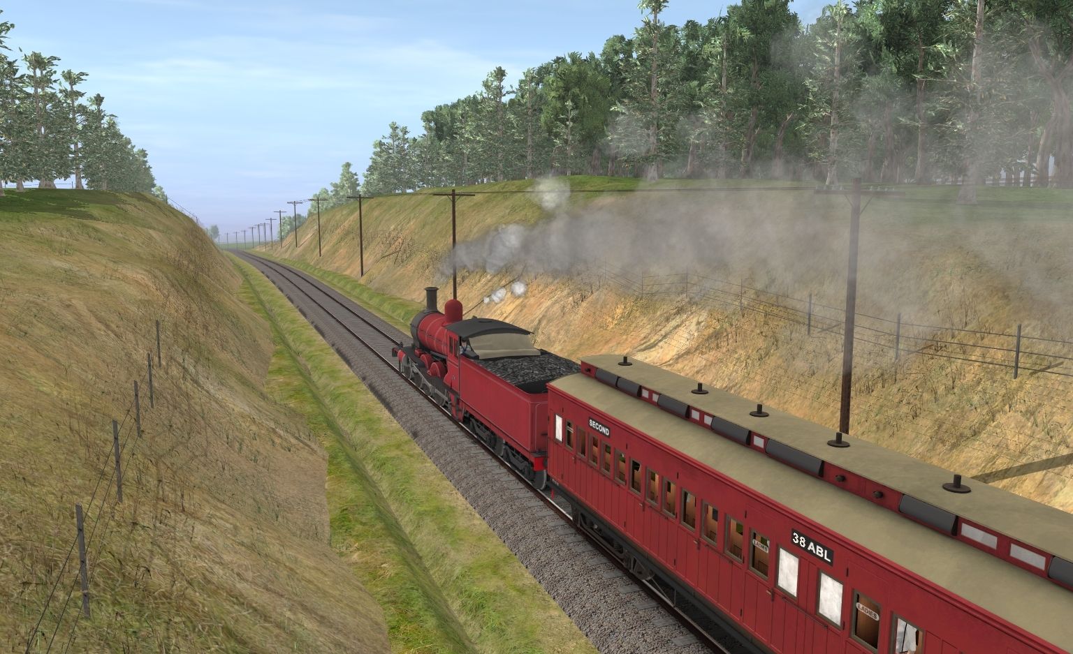 Tags: Trainz: A New Era, Healesville - 1913-1920, Down Excursion Train - Melbourne Cup Day, VR DD T2 WW1 Red C BG, VR ABL T1 1910-1954 carriage, VR DD T2 WW1 Red C Ten BG, VR BB class American Saloon pass car - 1, VR B car 6 wheel BG, VR B car 4 wheel BG, VR AB class American Saloon pass car - 1, VR AW car T1 - 1924-1954 BG, VR Z Guards Van T1 1930s-1950s - BG