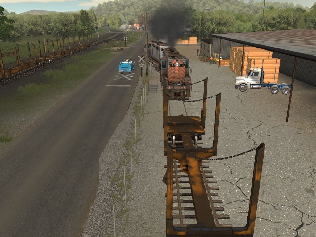 Tags: Trainz: A New Era, Coal Country - JointedRail.com, JR-Coal Country: Session 1 Richmond to Parker Run w/Empty Logracks, RPPX GP9 high, RPPX GP9 chop nose, RPPX Transfer Caboose, SVLX Log Rack Yellow
