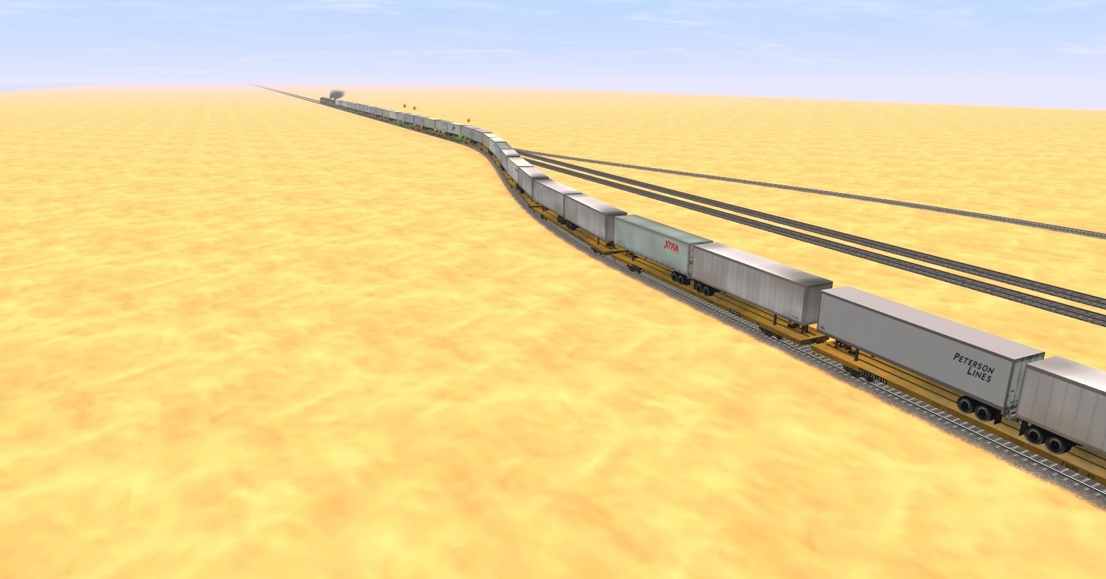 Posted by: EvanGaines | Posted:2017-08-18 20:59:30 Caption: Tags: Trainz: A New Era, Desert Journey, Desert Journey Specials - ATSF 1003 West 2, ATSF C30-7, ATSF SD45, TTX 89ft TOFC Flatcar