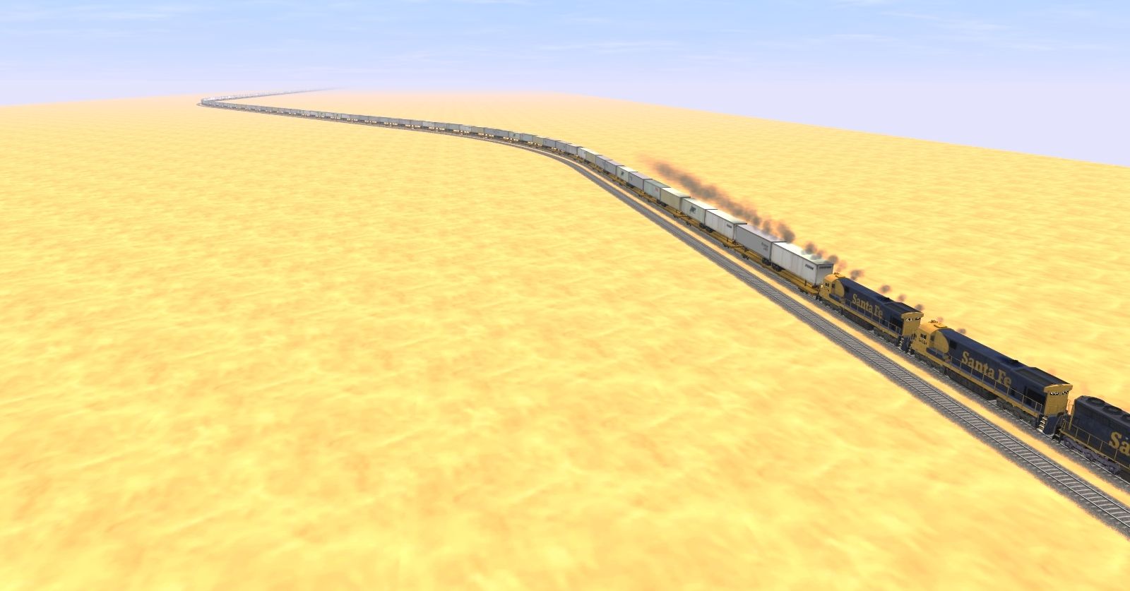 Tags: Trainz: A New Era, Desert Journey, Desert Journey Specials - ATSF 1003 West 2, ATSF C30-7, ATSF SD45, TTX 89ft TOFC Flatcar, ATSF Ce-11 Caboose