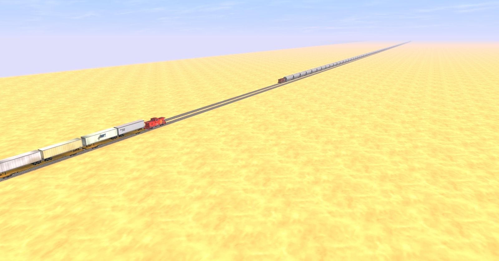Tags: Trainz: A New Era, Desert Journey, Desert Journey Specials - ATSF 1003 West 2, SP SD40T-2, SP GP40-2, ATSF C30-7, ATSF SD45, ATSF Ce-11 Caboose, SP C50-9 Caboose, JRPX ACF Centerflow 4 Bay round hatch, TTX 89ft TOFC Flatcar