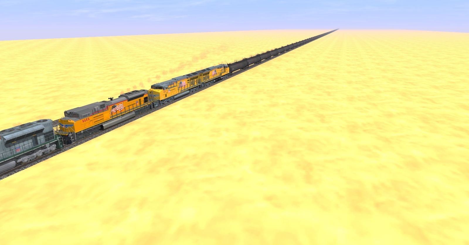 Tags: Trainz: A New Era, Desert Journey, Desert Journey - UP 844 Desert Excursion, EMD SD70ACe Union Pacific DES, EMD SD70ACE WP #1983, ES44AC Tier 4 Locomotive UP, TankTrain B, TankTrain A, TankTrain C, FRED UP