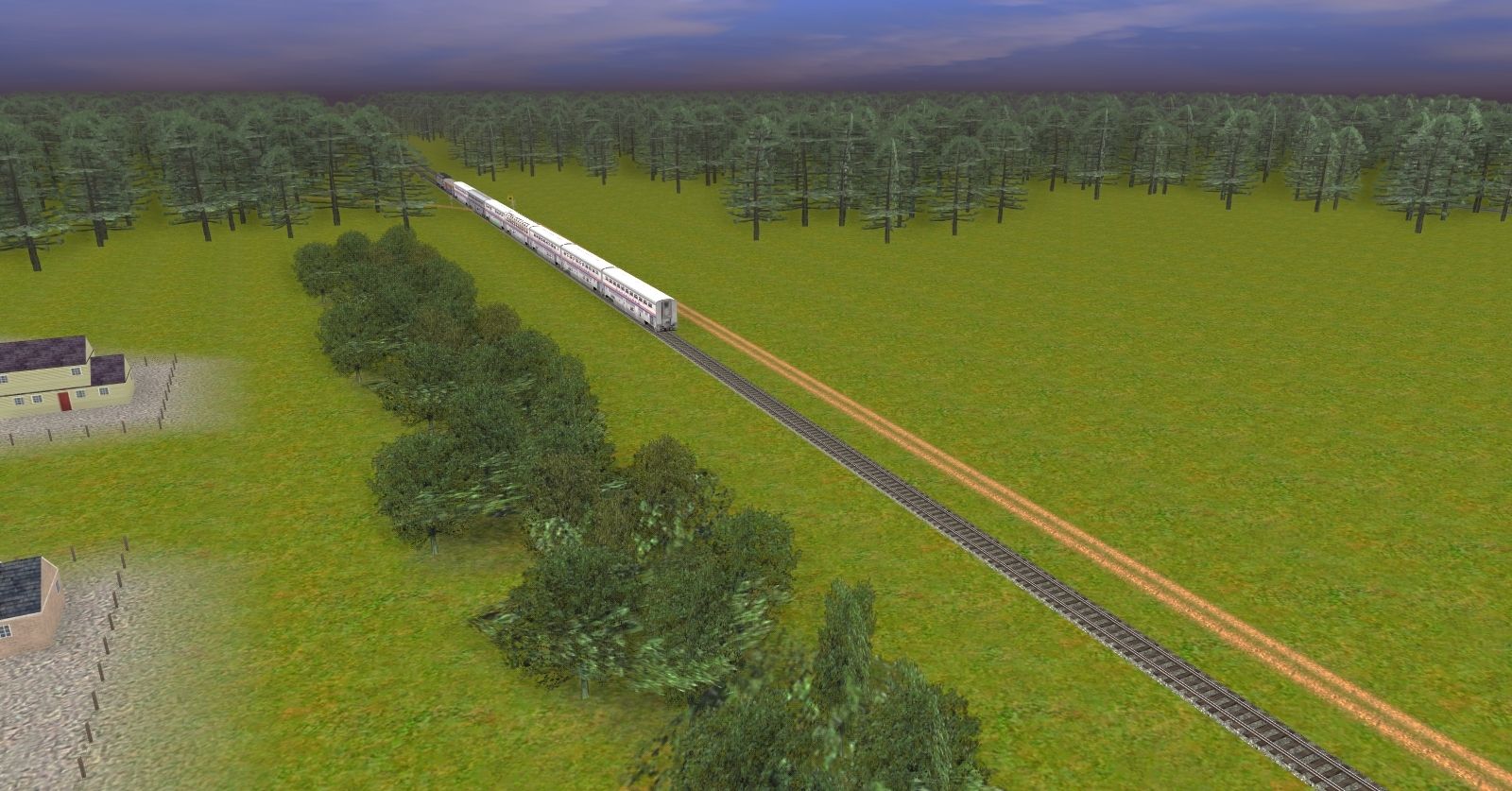 Tags: Trainz: A New Era, Plains Forest Version 1.0.1, Amtrak on the Plains Forest, Amtrak F40PH, Superliner I Coach Smoking 31545, Superliner II Sleeper 32501, Superliner II Transition Sleeper 39031, Superliner II Sightseer Lounge 33049, Superliner II Dining Car 38040, Superliner II Coach 34120, Superliner I Coach Bagagge 31005, Amtrak ACF Baggage Car Phase III