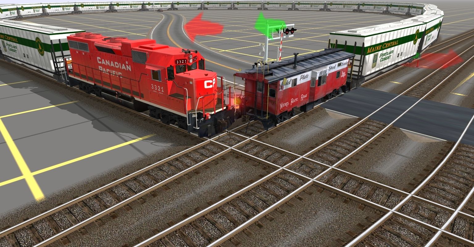 Tags: Trainz: A New Era, Maine Central Railroad, Woods of Maine, GP38-2 Canadian Pacific, NKP Caboose 400 Series, MeC Covered Hopper Cement&Sand