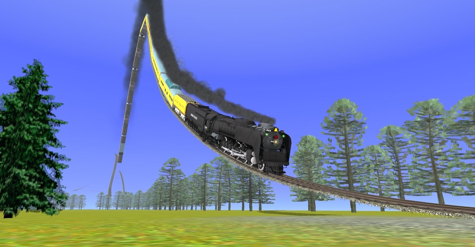 Tags: Trainz: A New Era, Speedemon's Crazy Coaster (Download Station), UPRR FEF-3 844, UP 9000 Locomotive, UP 9087 Locomotive, UP 9014 Locomotive, UP 9021 Locomotive, UPRR CSA-1 3800, UPRR FEF Black oil tender, UP Auxiliary Tender, UP dome chair 7000, Caboose C&O 90212 red, UP coach 5466