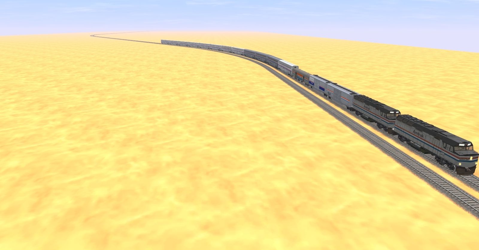 Tags: Trainz: A New Era, E Trains Railroad, E Trains RR - Amtrak Superliner, Amtrak F40PH, Amtrak Freight Rail Car 7100, Amtrak Freight Rail Car 74000, Amtrak ACF Baggage Car Phase III, Superliner I Coach Bagagge 31005, Superliner II Coach 34120, Superliner I Coach Smoking 31545, Superliner II Sightseer Lounge 33049, Superliner II Dining Car 38040, Superliner II Sleeper 32501, Superliner II Transition Sleeper 39031