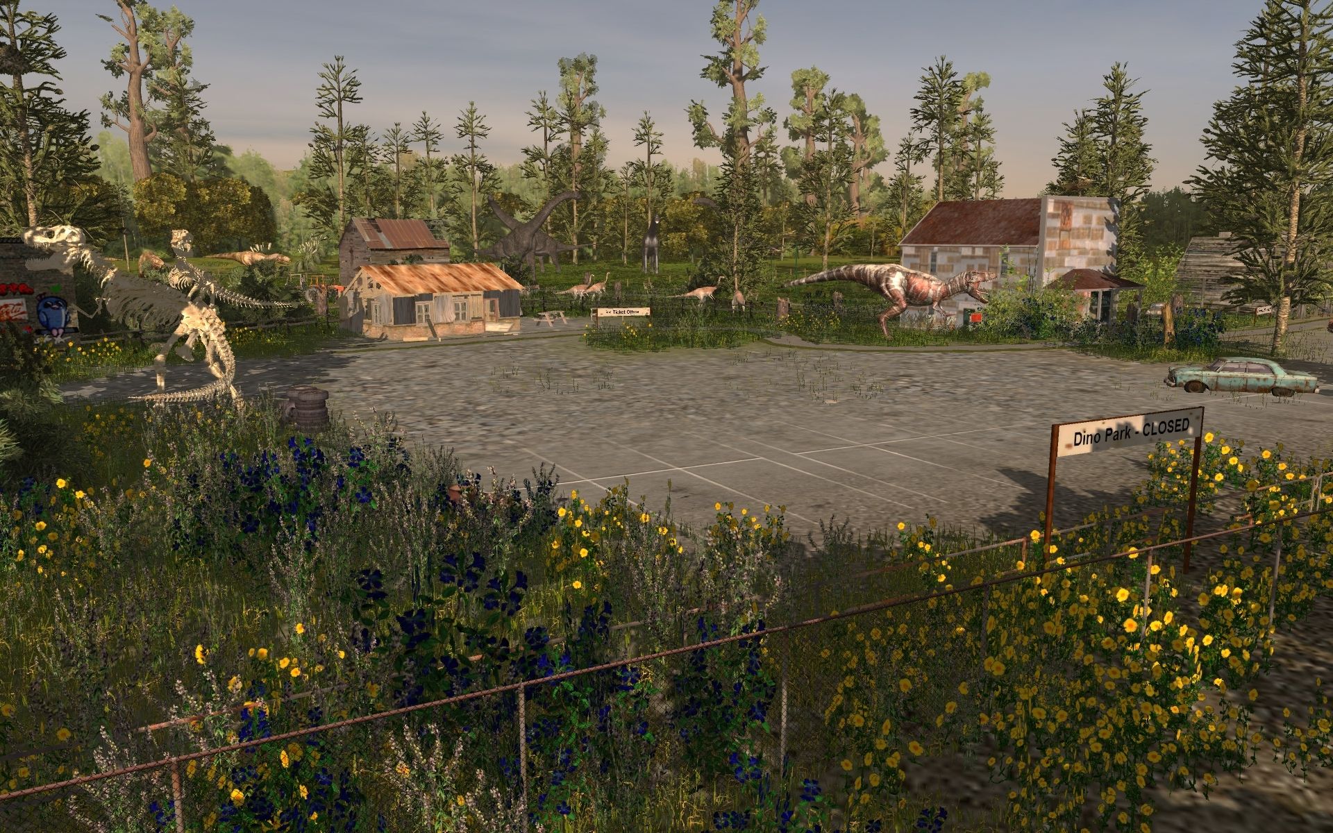 Caption: Derelict Dino theme park