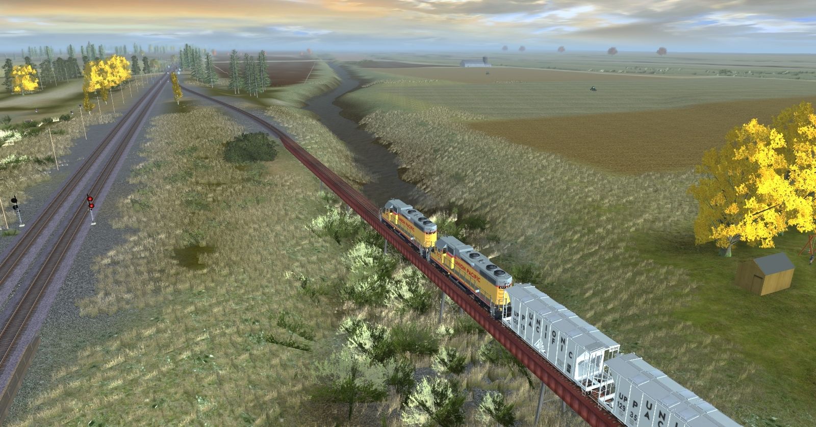 Tags: Trainz: A New Era, Fall Harvest - Nebraska, Grain Strain, GP38-2 Union Pacific DES, SP SD40T-2, Alco RS3 Union Pacific #1292, 2Bay ACF CovHopper Union Pacific 1 #, 2Bay ACF CovHopper Union Pacific 2 #, JRPX ACF Centerflow 4 Bay round hatch, Oil Tanker UTLX 60 Ft, MN MOW GATX, Penn Salt GATX Tanker, Log Wagon Short Knuckle, Mill Gondola 52' WL&G (5700 series)