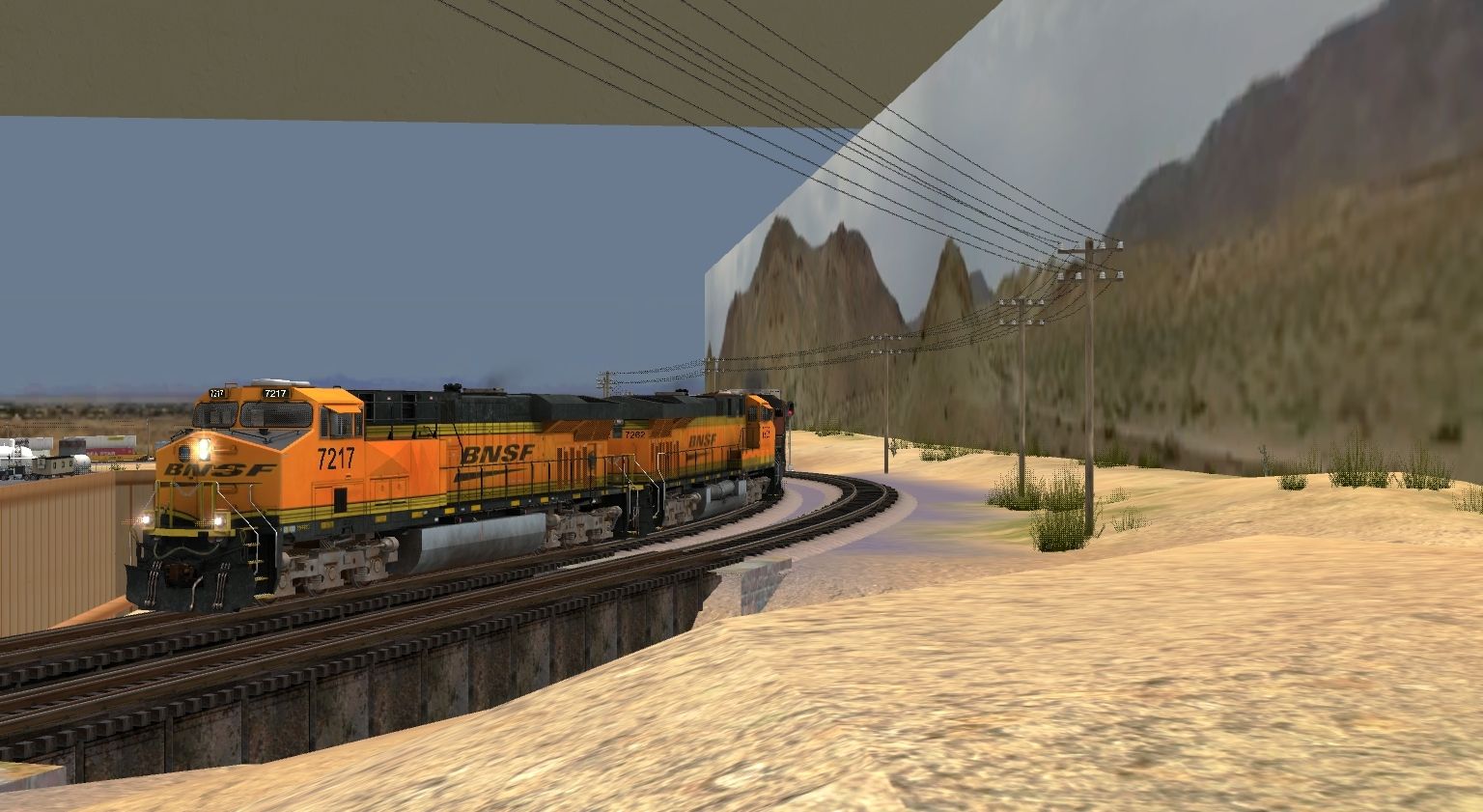 Tags: Trainz: A New Era, Santa Fe Needles District, BNSF ES44DC Dirty 1, BNSF H2 Dash 9-44CW, 60ft HC Boxcar BNSF Ver1, 60ft HC Boxcar NS Ver2, 89Ft Autorack UP 2, 89Ft Autorack UP 3, 73ft Centerbeam TTX 2, 73ft Centerbeam TTX 3, UTLX LPG Tank (Modern), TTX Flatcar, Invisible Train