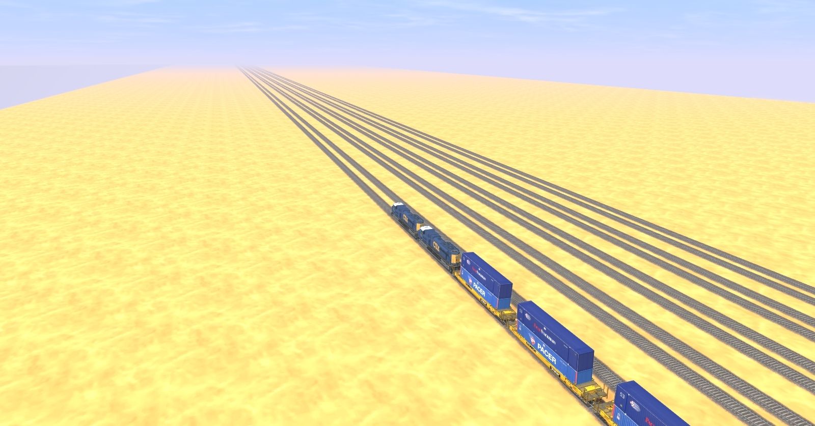 Tags: Trainz: A New Era, E Trains Railroad, E Trains RR - Long Distance Record Run, CSX SD70ACe, TTX 53 ft Wellcar, 53 ft Wellcar BNSF (SEA-LAND)