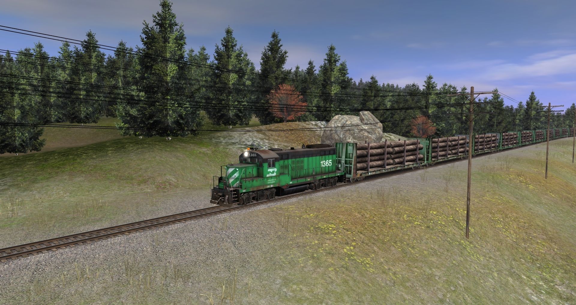 Posted by: sookool | Posted:2017-09-03 01:52:16 Caption: Tags: Trainz: A New Era, Legacy of the Burlington Northern v2, West Clyde Sawmill, BN GP5 low hood, BN 62Ft. Bulkhead (early era)
