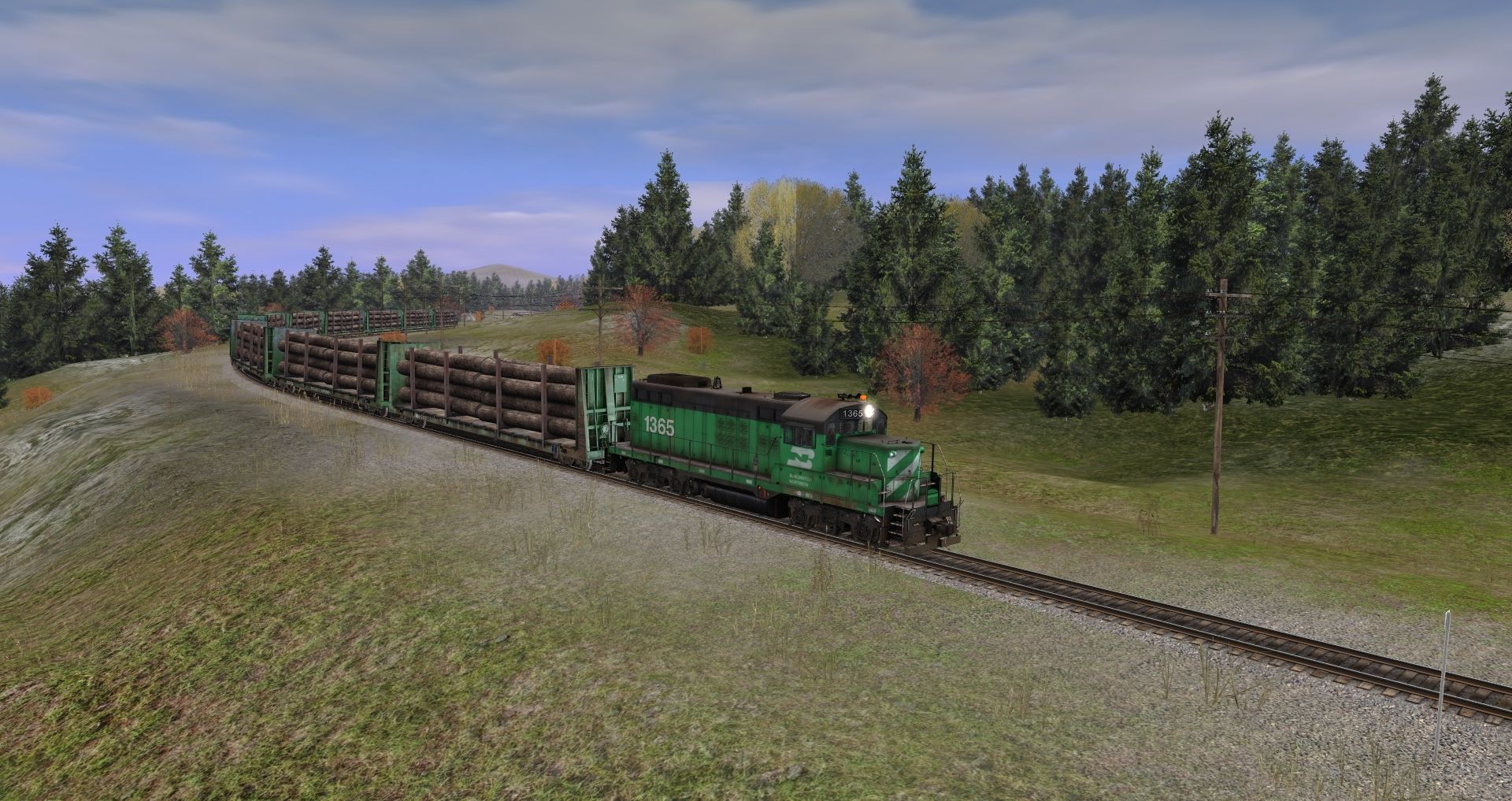 Posted by: sookool | Posted:2017-09-03 01:54:52 Caption: Tags: Trainz: A New Era, Legacy of the Burlington Northern v2, West Clyde Sawmill, BN GP5 low hood, BN 62Ft. Bulkhead (early era)