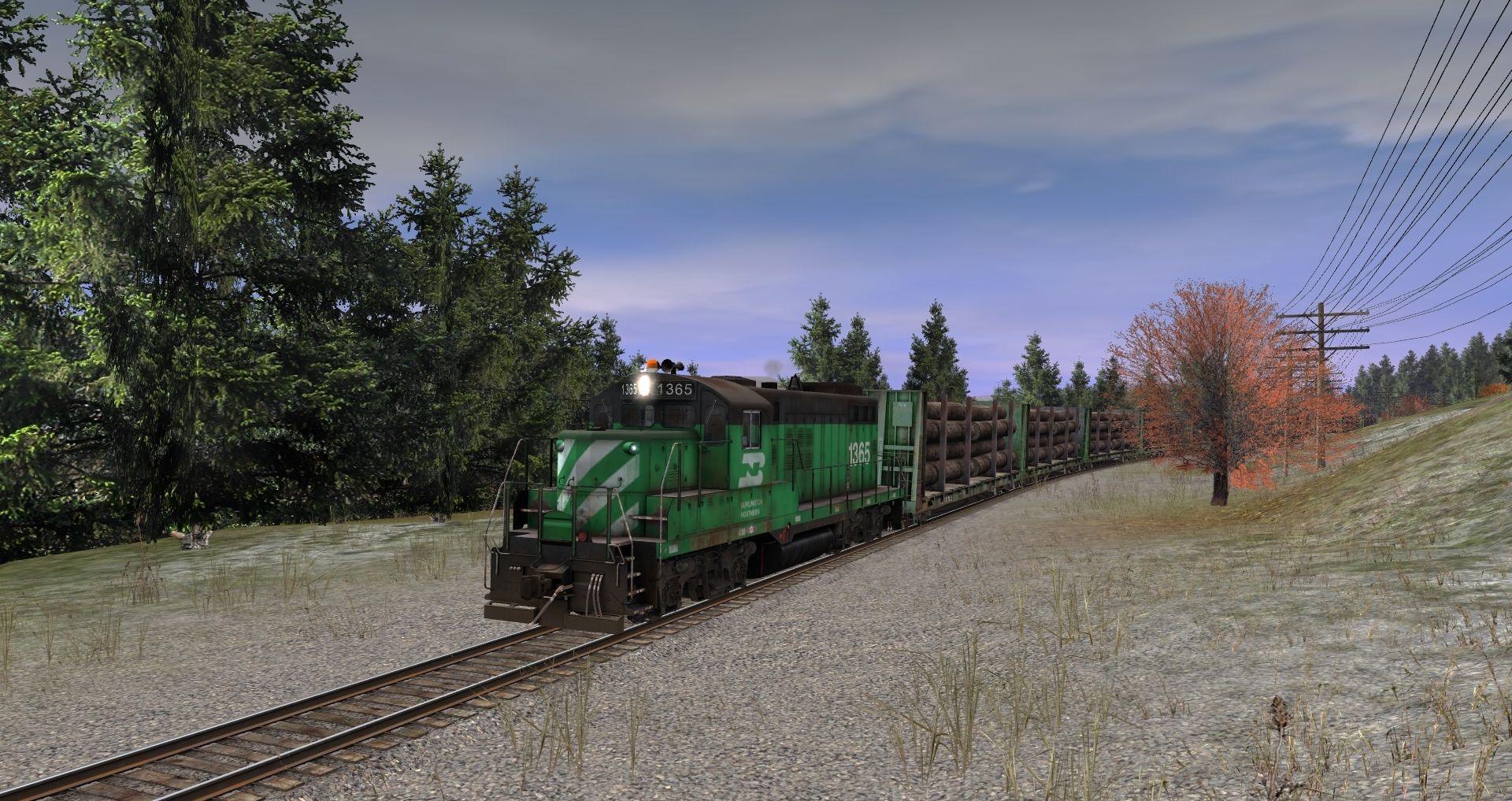 Tags: Trainz: A New Era, Legacy of the Burlington Northern v2, West Clyde Sawmill, BN GP5 low hood, BN SD7 high hood, BN 62Ft. Bulkhead (early era)