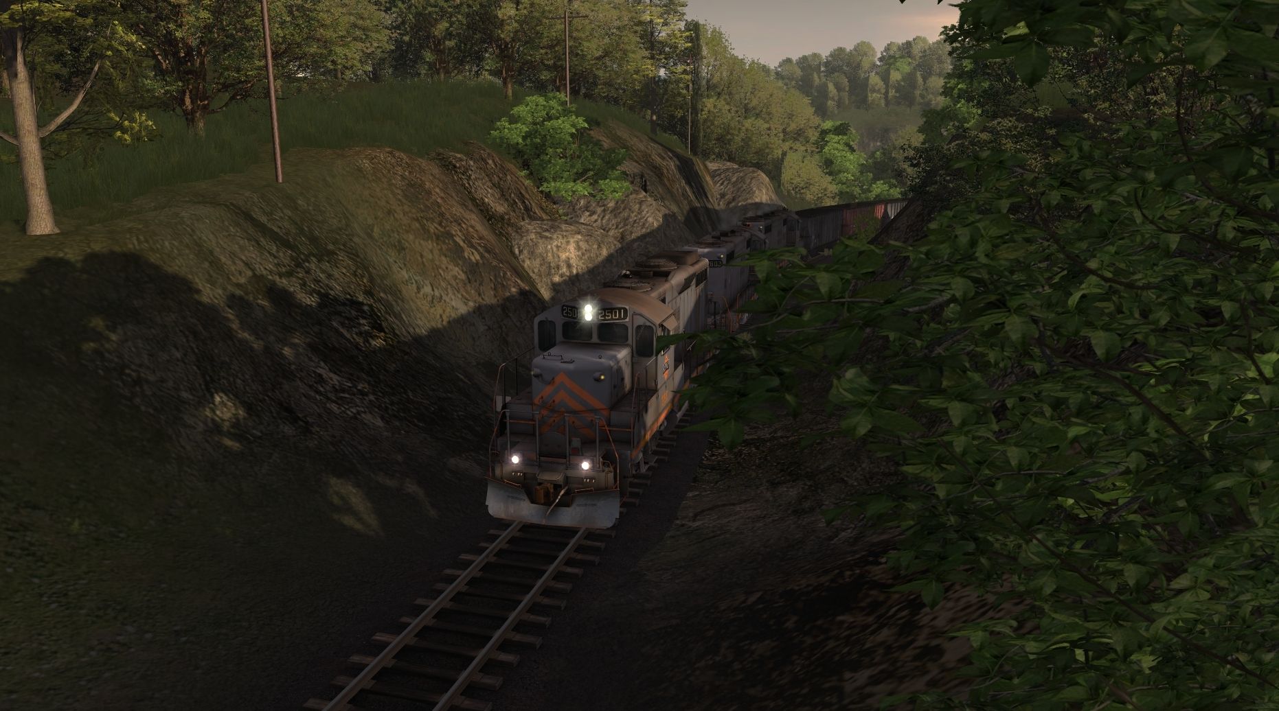Tags: Trainz: A New Era, Coal Country - JointedRail.com, 03 - Coal Service, RPPX GP9 chop nose, RPPX GP9 high, RPPX GP18 (ex-CR), RPPX 100 Ton Hopper, JR 52ft Gondola CEFX 1, RPPX Coach Car Dome, RPPX 60Ft.9In. scrap gondola, SVLX Log Rack Yellow