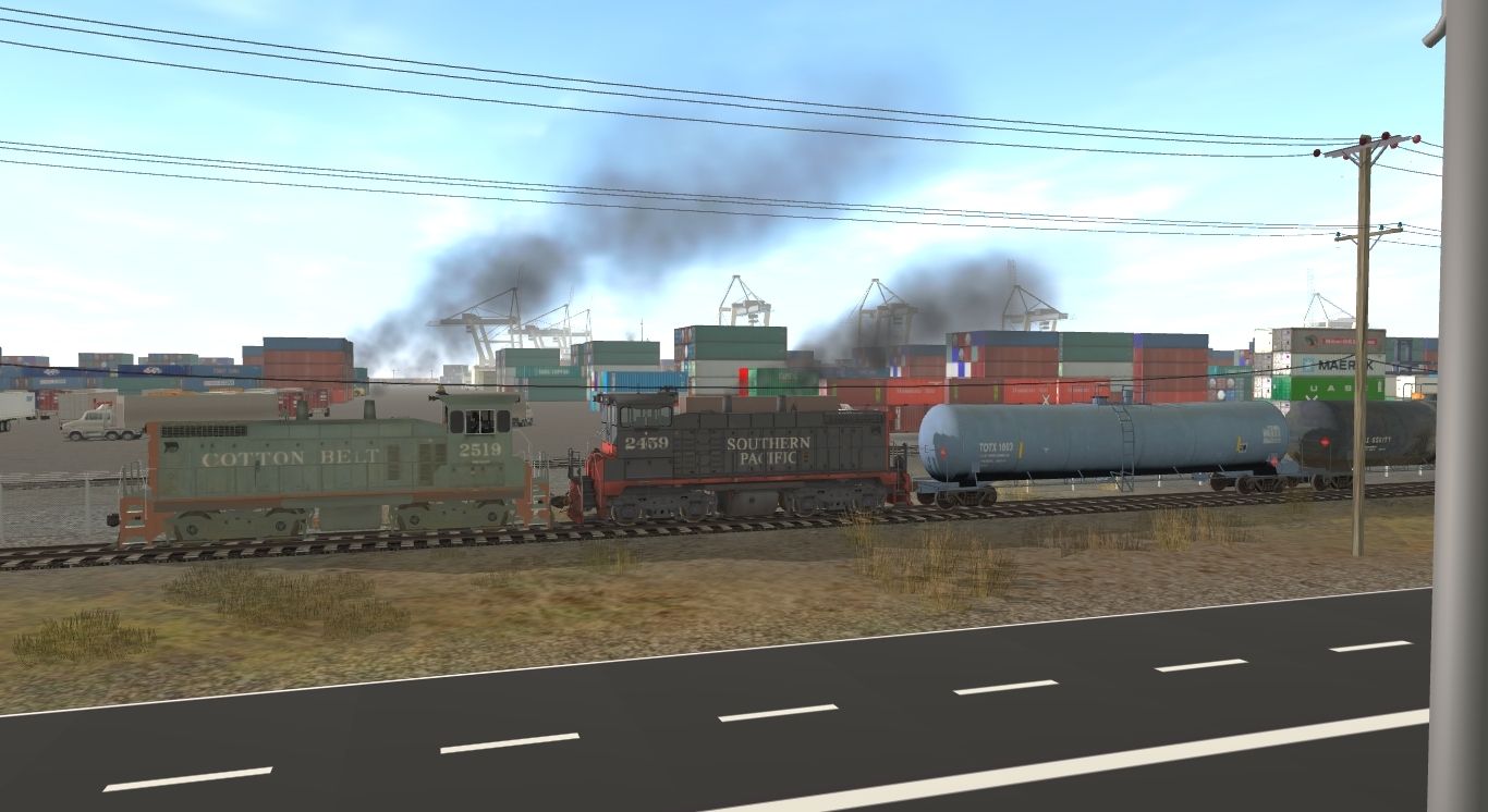 Tags: Trainz: A New Era, Los Angeles Harbor Belt Line, Day 11, Cotton Belt Sw1500 2519, Southern Pacific SW1500 - 2459, Tank car 57ft TOTX 1003-rev, Tank car 57ft CAGX 950177-rev, 50ft Boxcar GMRC 24001-rev, 50ft Boxcar FXE 871649-rev, BN Twin Stack Red C, BN Twin Stack Red D, BN Twin Stack Red E, BN Twin Stack Red A, TTX 48ft Double Stack wellcar