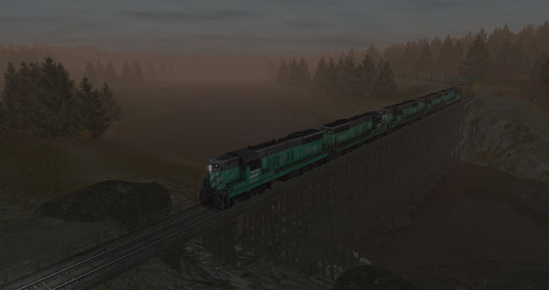 Tags: Trainz: A New Era, Legacy of the Burlington Northern v2, General freight, BN SD7 high hood, BN 60ft Thrall Boxcar, BN 50' RBL, BN 40' Hy-Cube Boxcar, NP 40' Hy-Cube Boxcar, BN ACF Centerflow 3 Bay long hatch, BN 50' ACF Boxcar 3, BN 50' ACF Boxcar 4, UP 60' ACF Boxcar, UP PC&F 6033, ATSF ACF Centerflow 3 Bay long hatch