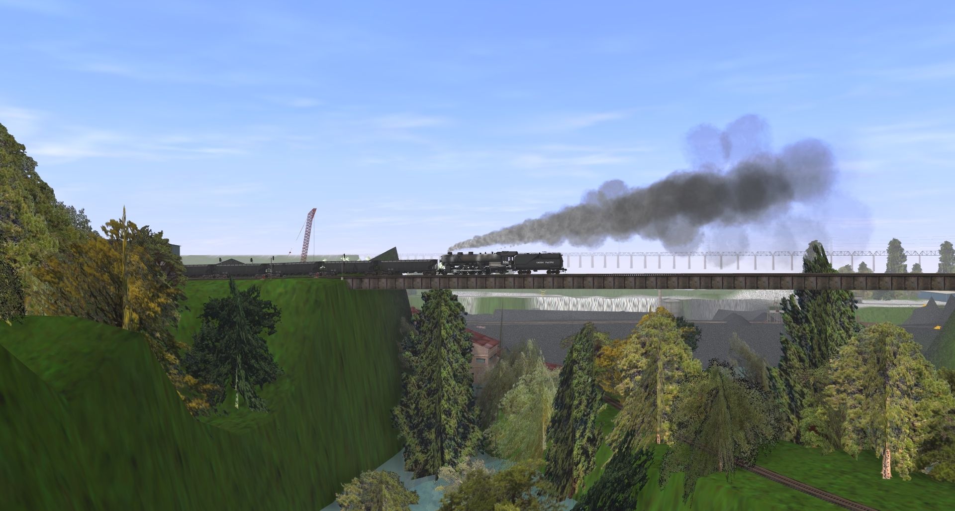 Posted by: bufordfarmboy | Posted:2017-09-15 21:29:29 Caption: Crossing The Lancaster & Chester Coal Mine Tags: L&C Route, UPRR FEF-3 843, Union Pacific TTT oil tender, TRS_Coal_Hopper