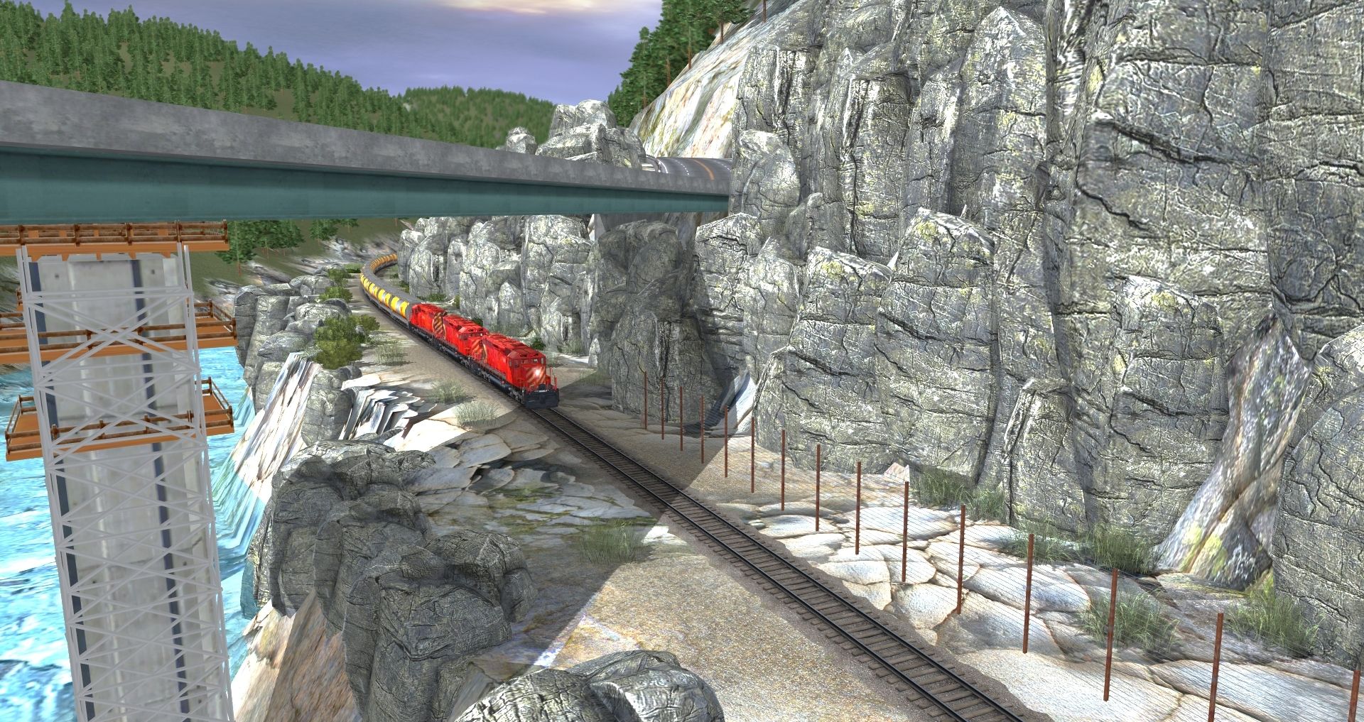 Tags: Trainz: A New Era, Canadian Rocky Mountains - Columbia River Basin, One-Tunnel Automatic Session CRB, CP Rail SD40-2 - Weathered, Gov of Canada Grain2, Gov. of Alberta Grain1, Gov of Sask. Grain1, CP 52'8'' Bulkhead Flatcar Tolko, CPR 40' Boxcar