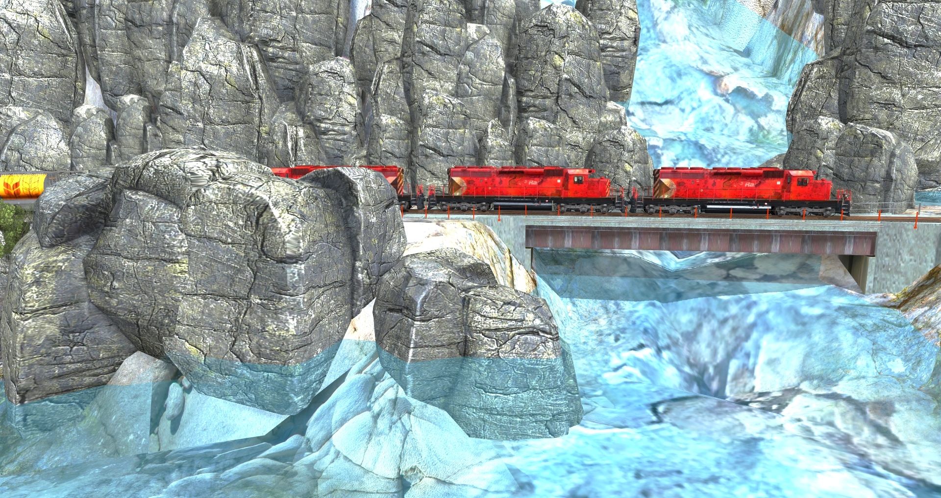 Tags: Trainz: A New Era, Canadian Rocky Mountains - Columbia River Basin, One-Tunnel Automatic Session CRB, CP Rail SD40-2 - Weathered, Gov of Canada Grain2, Gov. of Alberta Grain1, Gov of Sask. Grain1, CP 52'8'' Bulkhead Flatcar Tolko, CPR 40' Boxcar