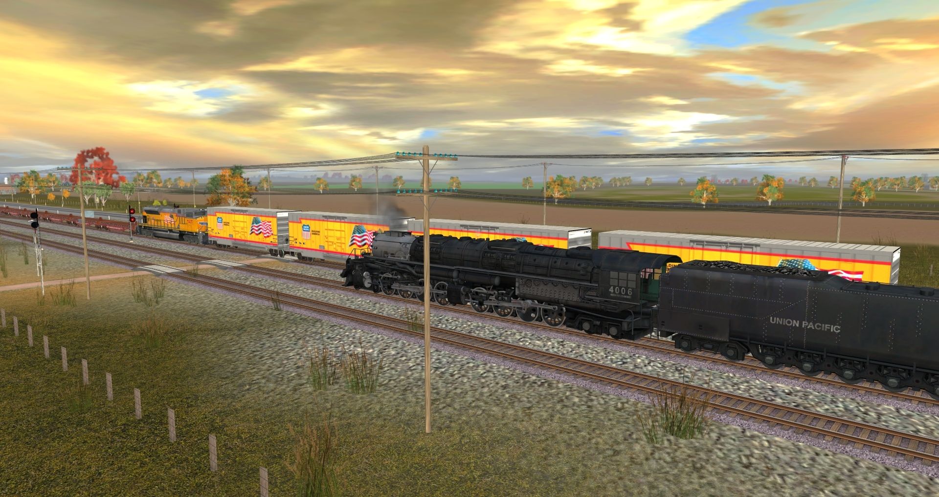 Tags: Trainz: A New Era, Fall Harvest - Nebraska, Steam Heritage Trip, UP Big Boy, EMD SD70ACe Weathered Union Pacific DES, Union Pacific SD90MAC-H (Weathered), Union Pacific UP Dash 9 #9571, UP Big Boy Tender, PRR Pullman Coach 1 V1 '06, Boxcar HiCube 50ft Union Pacific DES, PRR Pullman Coach 2 V1 '06, Boxcar PS-1 50 ft Union Pacific Ver 1 DES, PRR Pullman Coach 2 V2 '06, PRR Pullman Coach 3 V2 '06