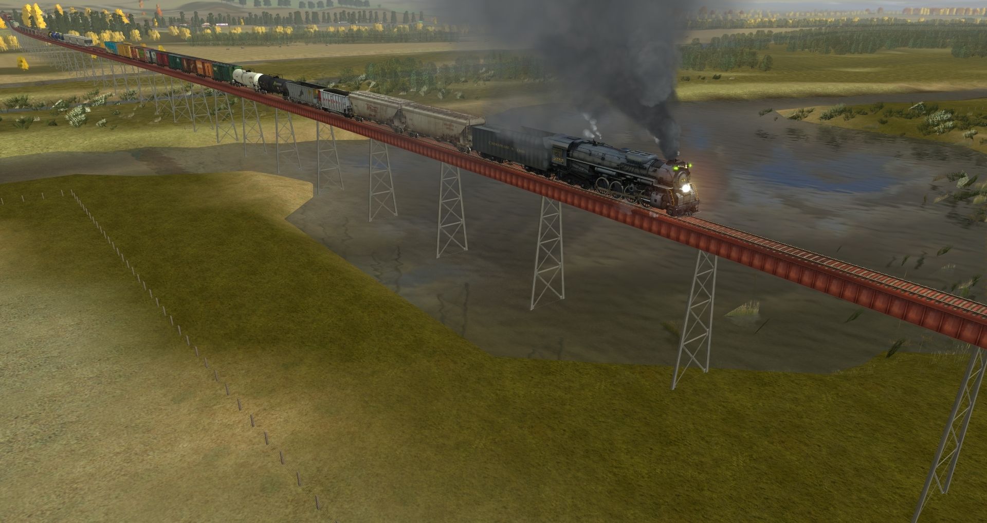 Tags: Trainz: A New Era, Fall Harvest - Nebraska, C&O Kanawha K-4 Steam, C&O Kanawha K-4 Tender, Custom ACF 3 Bay - Winchester & Western, Custom ACF 3 Bay - W Farms LLC, Custom C80 - Havenwood Southern, Custom 100 Ton Hopper - MRM, Custom 23000 gal tank - BundleStars, Custom 23000 gal tank - HK Oil, Custom 40' Boxcar - AU Logitistics, Custom 40' Boxcar - a giberiginal Game Store, Custom 40' Boxcar - Grizzled Aussie's Dark Rum
