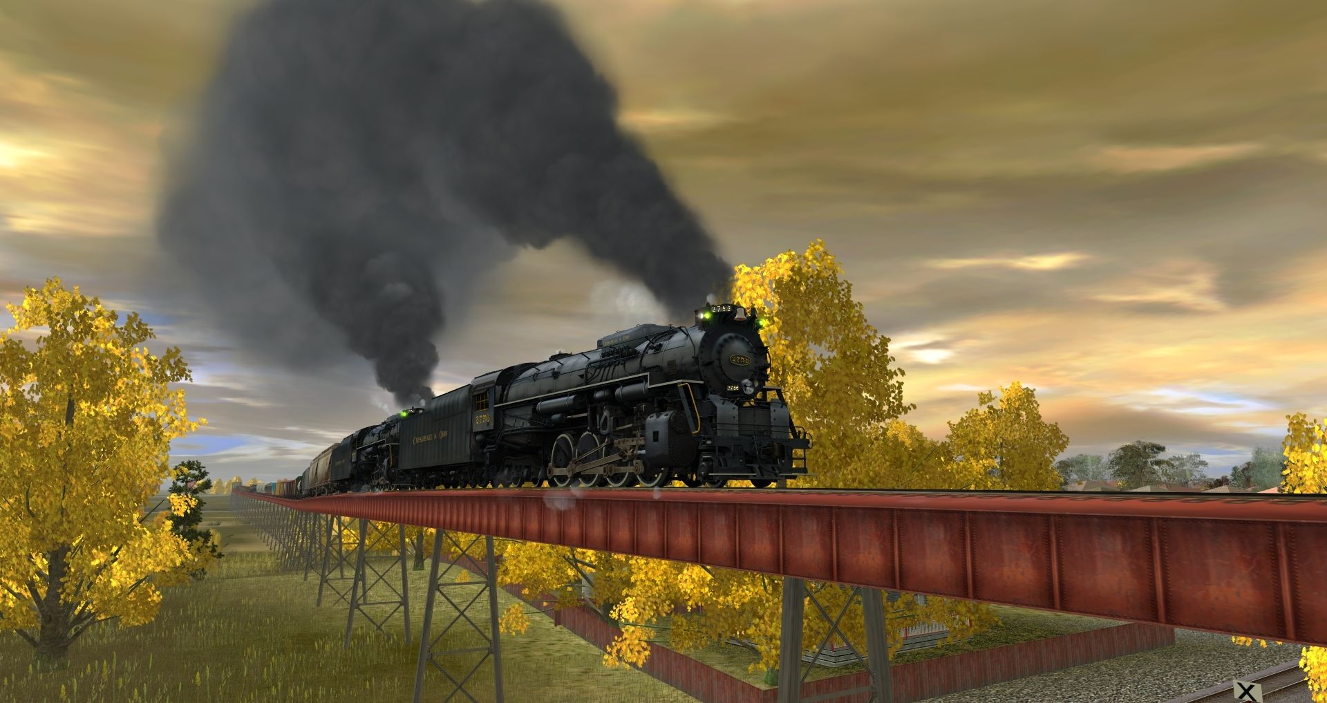 Tags: Trainz: A New Era, Fall Harvest - Nebraska, C&O Kanawha K-4 Steam, C&O Kanawha K-4 Tender, Custom ACF 3 Bay - Winchester & Western, Custom ACF 3 Bay - W Farms LLC, Custom C80 - Havenwood Southern, Custom 100 Ton Hopper - MRM, Custom 23000 gal tank - BundleStars, Custom 23000 gal tank - HK Oil, Custom 40' Boxcar - AU Logitistics, Custom 40' Boxcar - a giberiginal Game Store, Custom 40' Boxcar - Grizzled Aussie's Dark Rum