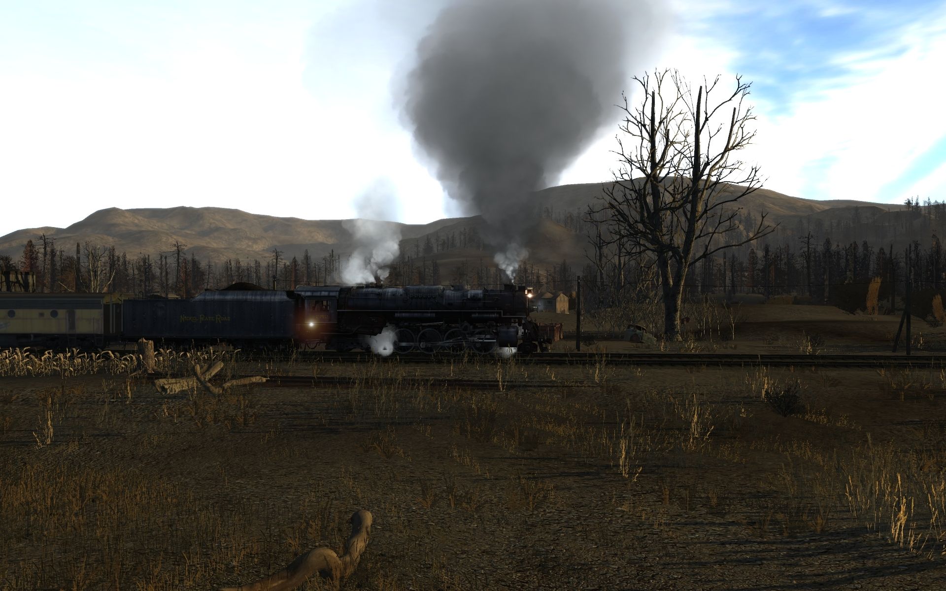 Tags: Trainz: A New Era, Whirlpool Rail, Whirlpool Rail Session, NKP S-2 Weathered, Loco S&A 4-6-2 #750, NKP S-2 Tender Weathered, Coal 2 Bay Hopper Ford #MFX, Log Wagon Short Knuckle, Loco S&A 4-6-2 #750 Tender, 40ft Boxcar NKP, NZGR Aa 2nd class coach green, DB Shimmns AIC Graffiti, DB Shimmns Railion Graffiti, Cattle