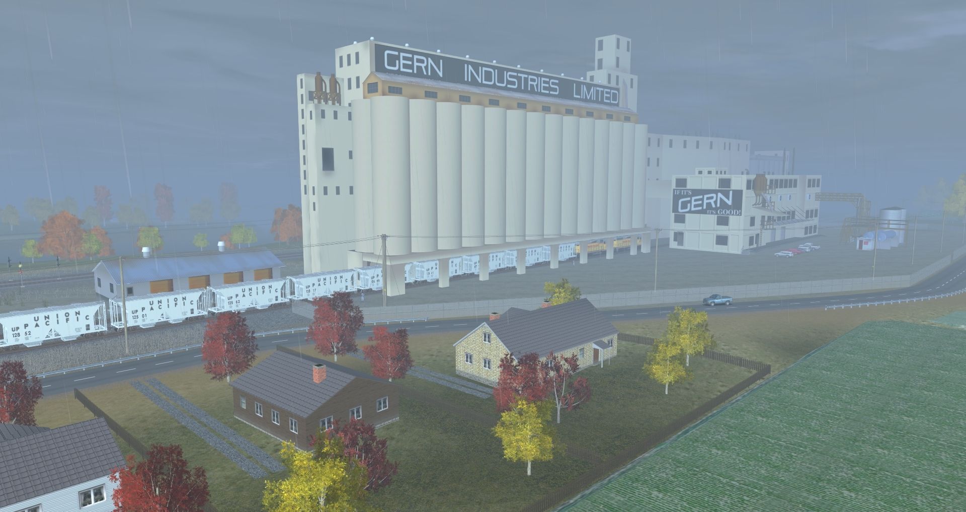 Tags: Trainz: A New Era, Fall Harvest - Nebraska, Grain Strain, GP38-2 Union Pacific DES, Union Pacific DD35 A unit #84, Union Pacific DD35 B unit #74b, General Electric U50 Union Pacific, 2Bay ACF CovHopper Union Pacific 2 #, 2Bay ACF CovHopper Union Pacific 1 #, union pacific piggyback car 1, 54ft Midwestern Grain covered hopper, Autorack TTGX Union Pacific #, union pacific 82ft container car