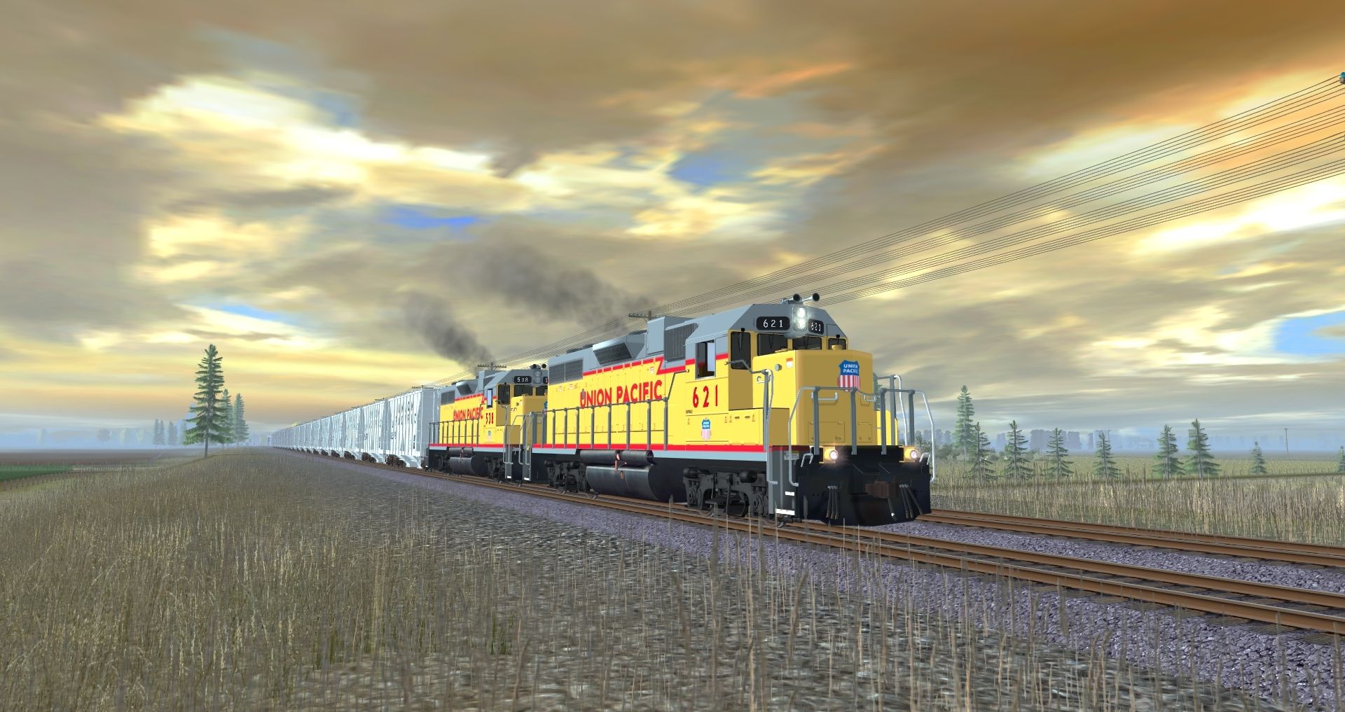 Tags: Trainz: A New Era, Fall Harvest - Nebraska, Grain Strain, GP38-2 Union Pacific DES, Union Pacific DD35 A unit #84, Union Pacific DD35 B unit #74b, 2Bay ACF CovHopper Union Pacific 1 #, 2Bay ACF CovHopper Union Pacific 2 #, union pacific piggyback car 1, 54ft Midwestern Grain covered hopper