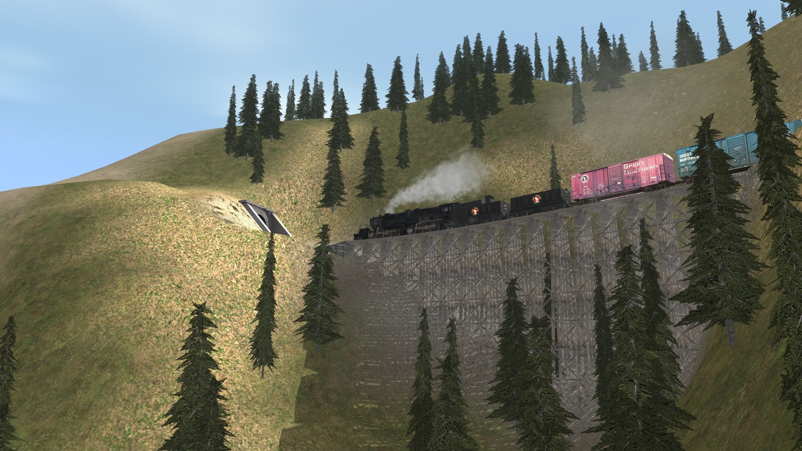 Tags: Trainz: A New Era, 0 Libby to Yaak Mt., Tamerack to Wampoo, GN No. 2009 Y-3 2-8-2, 40ft Hycube GN 19602, 40ft Hycube GN 20095, 40ft Hycube GN 13239, 40ft Hycube GN 2549, 40ft Hycube GN 12176, 40ft Stockcar GN 54111, GN No. 2009-A Tender, GN No. 2009 Tender, 40ft Stockcar Great Northern 55925 Ant, 60ft Gondola GN 78592