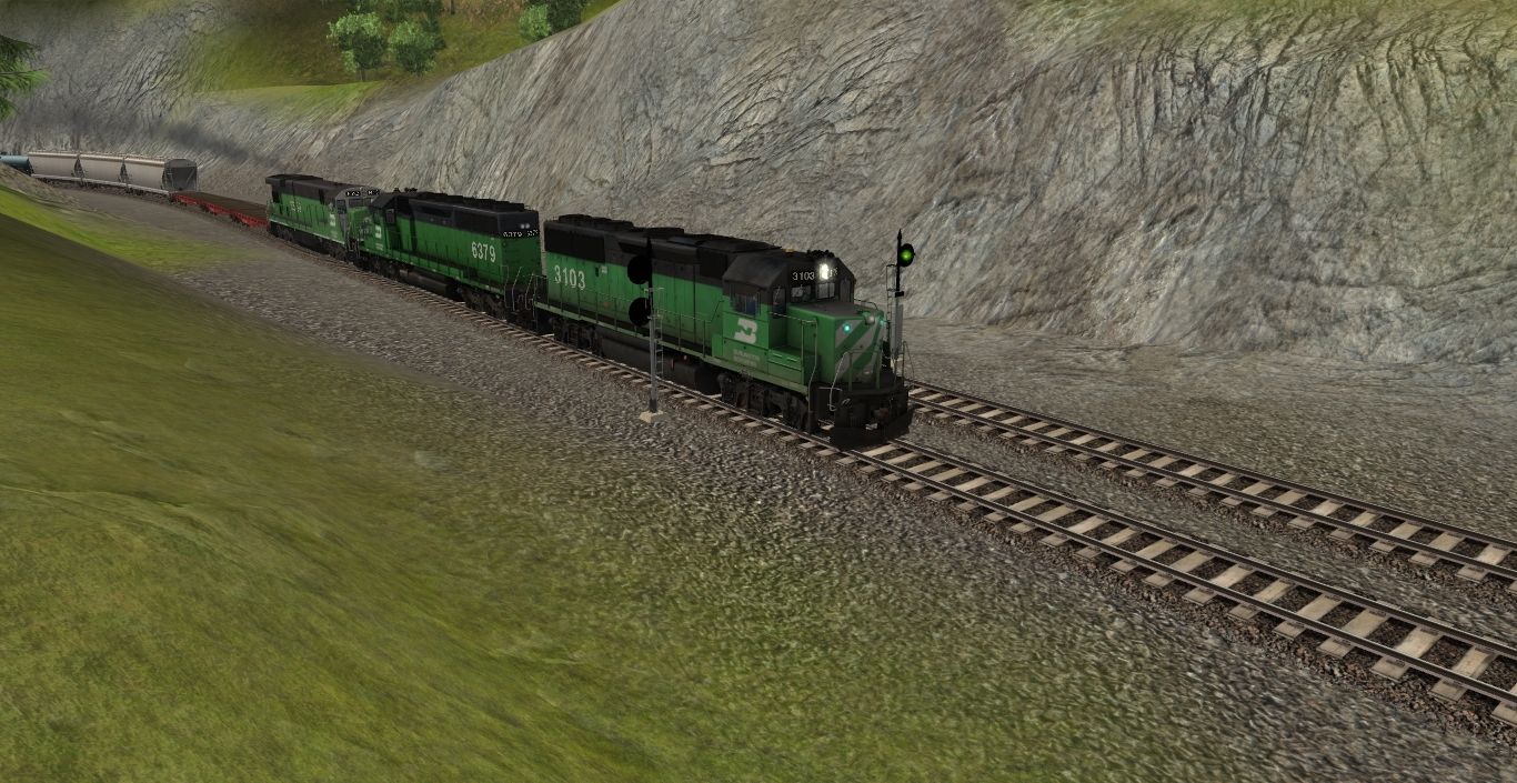 Tags: Trainz: A New Era, Kickstarter County, Default, BN GP50 ph1, BN SD40-2 1a, BN C30-7, PRR FM flat car, JRPX ACF Centerflow 4 Bay round hatch, Oil Tanker UTLX 60 Ft, MN MOW GATX, Penn Salt GATX Tanker, Log Wagon Short Knuckle, Mill Gondola 52' Railgon