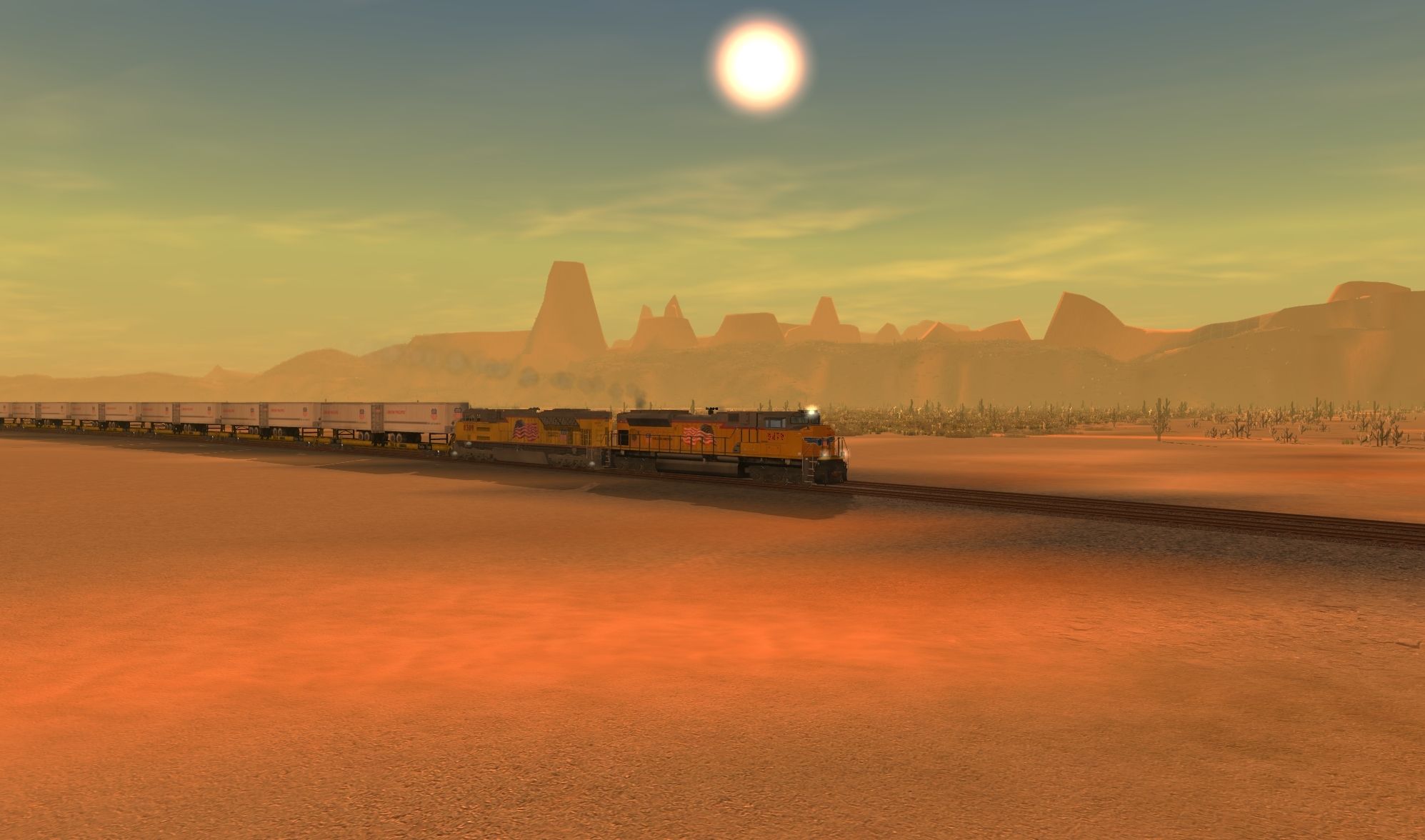 Tags: Trainz: A New Era, The North Line, Default, EMD SD70ACe Weathered Union Pacific DES, EMD SD70ACe UP #8309, 89ft TTX Flat w/ UP trailers