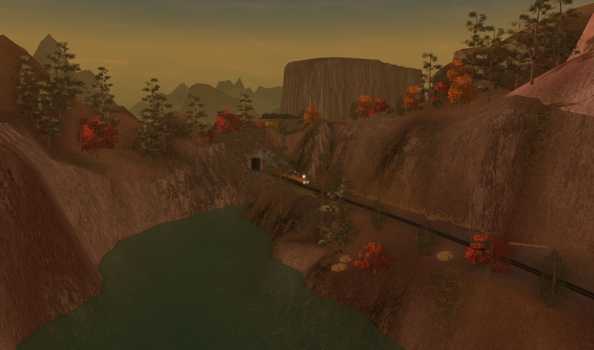Caption: Silver River and a Helper Consist downhill to SandStone. Cristal Lake Line between Santa Isabel and Blackstone. The North Project