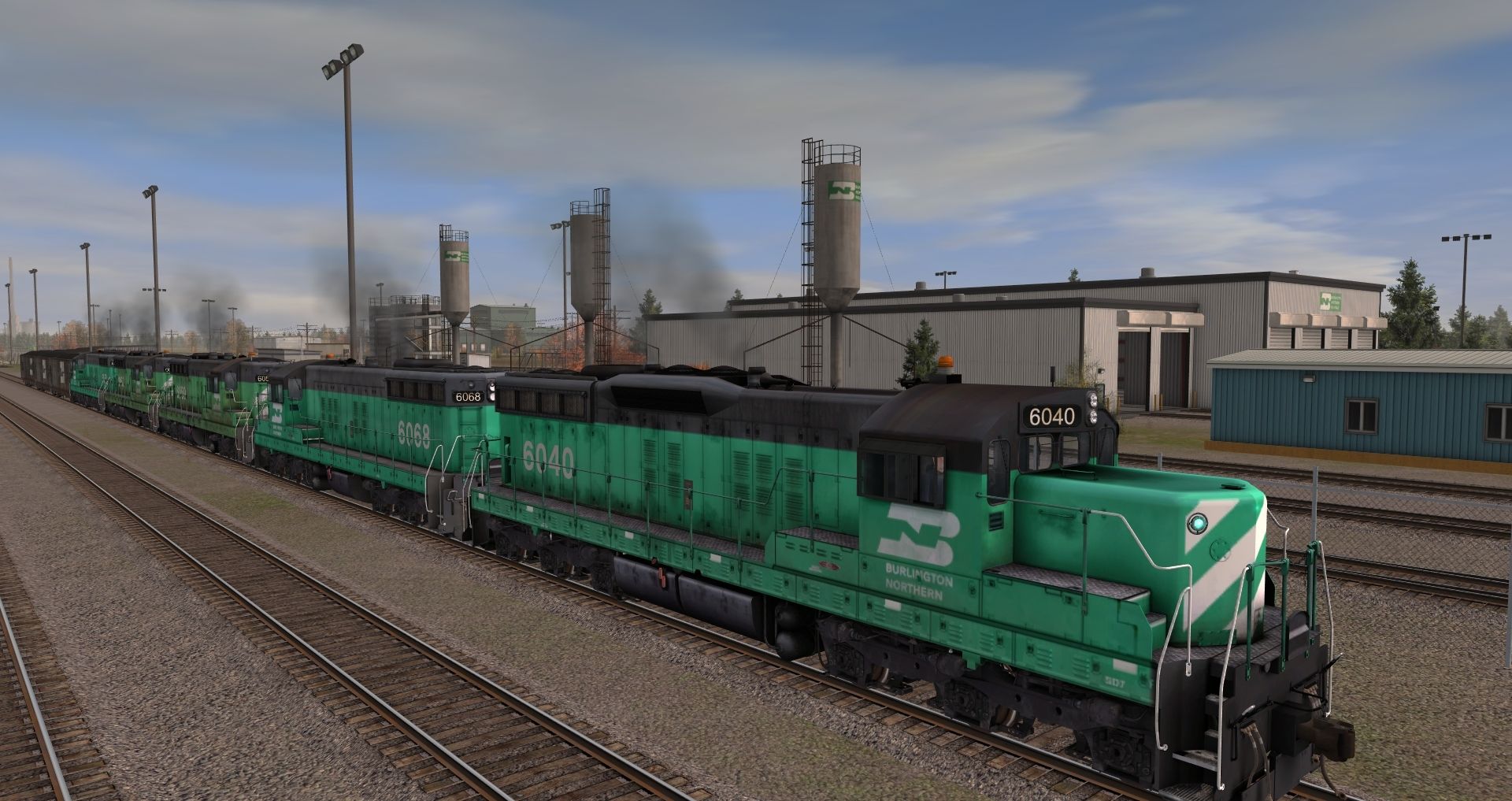 Tags: Trainz: A New Era, Legacy of the Burlington Northern v2, Coal delivery, BN SD7 low hood, BN SD7 high hood, BN ACF Centerflow 3 Bay long hatch, BN 100 Ton Hopper, BN Ce-11 Caboose